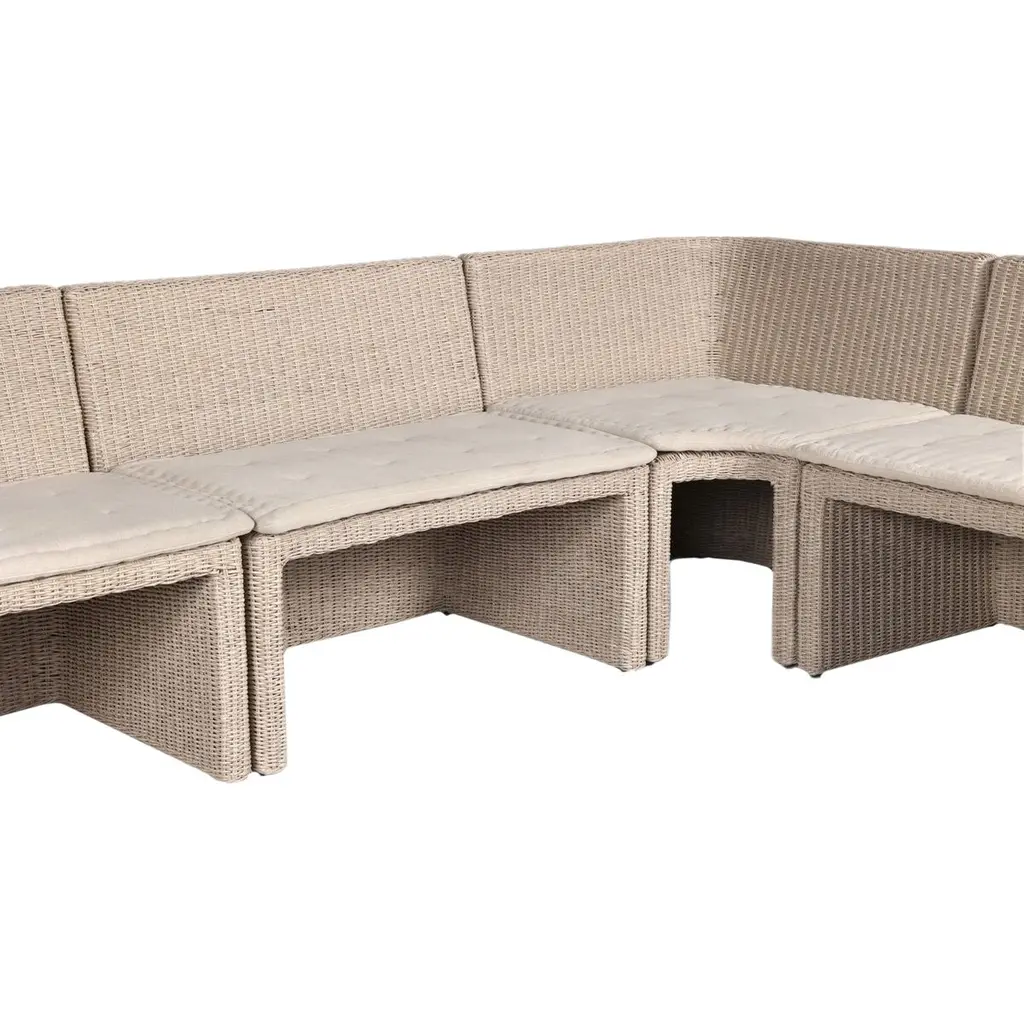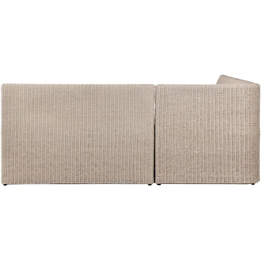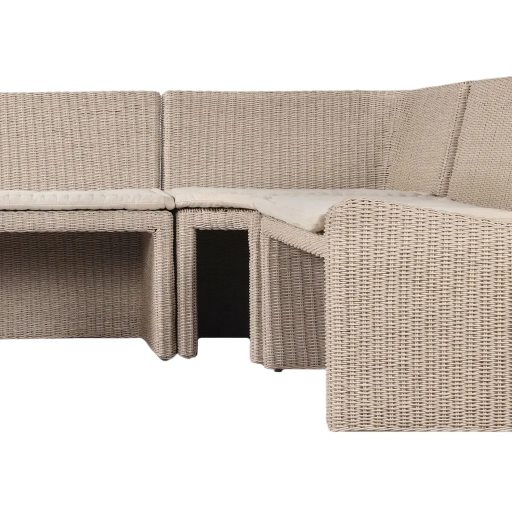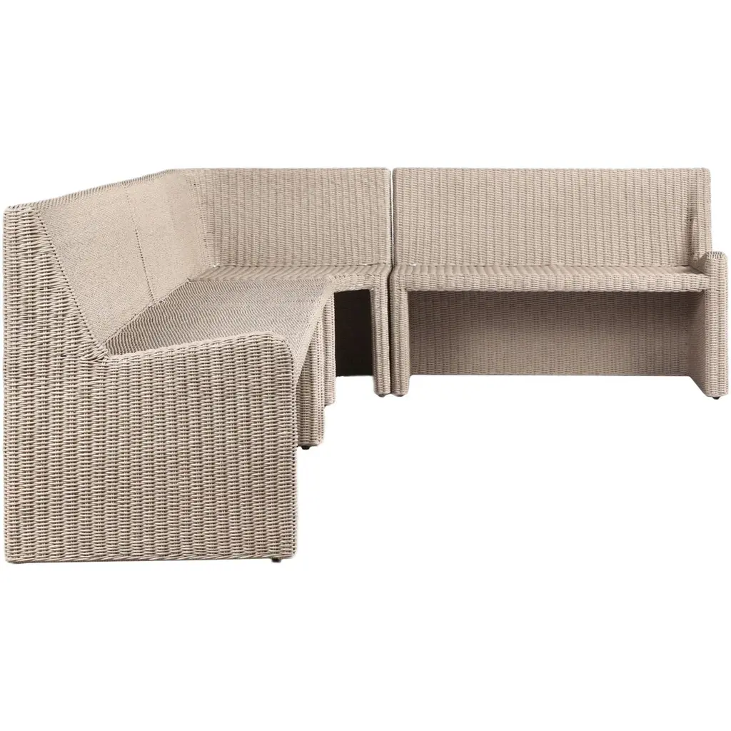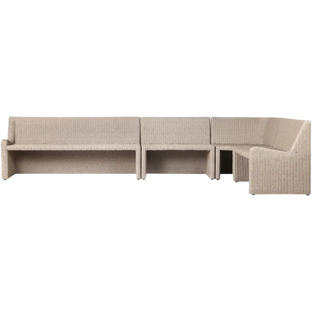 Antique-inspired coastal style. Rattan introduces varying natural shades and texture to this dining bench, and the frame's soft lines and fabric cushion invite a comfortable sit. Option to style alone or pair with other pieces in the collection. A design collaboration by Amber Lewis and Four Hands.