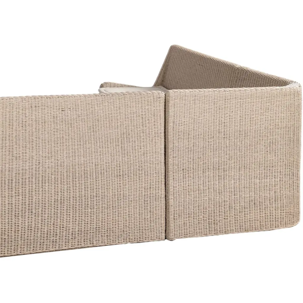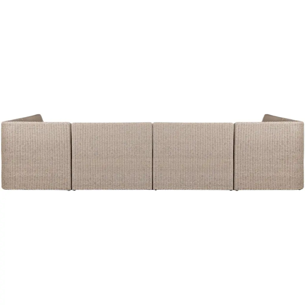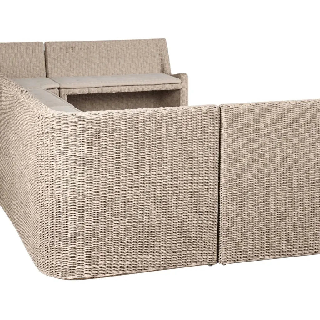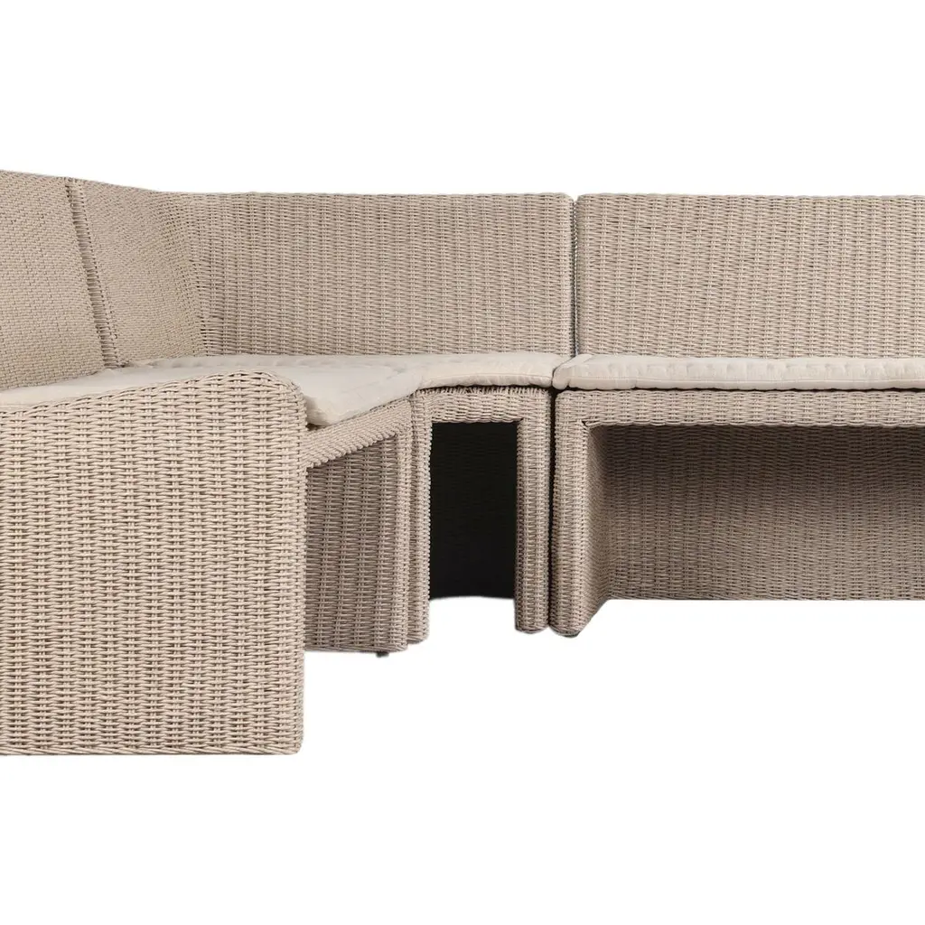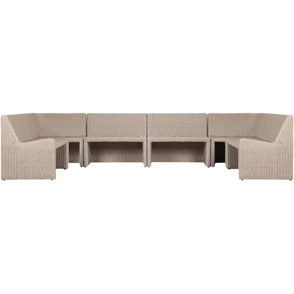 Antique-inspired coastal style. Rattan introduces varying natural shades and texture to this dining bench, and the frame's soft lines and fabric cushion invite a comfortable sit. Option to style alone or pair with other pieces in the collection. A design collaboration by Amber Lewis and Four Hands.
