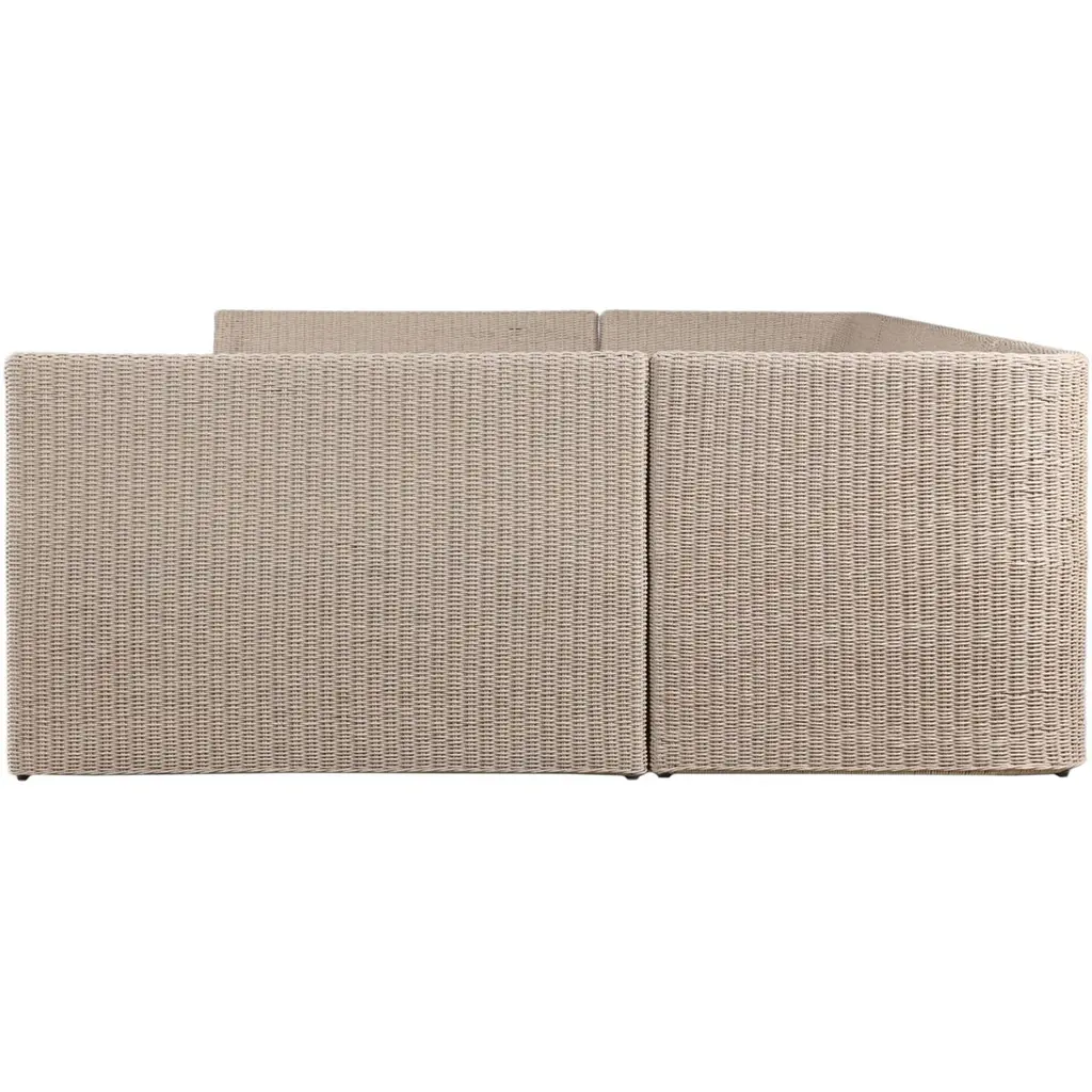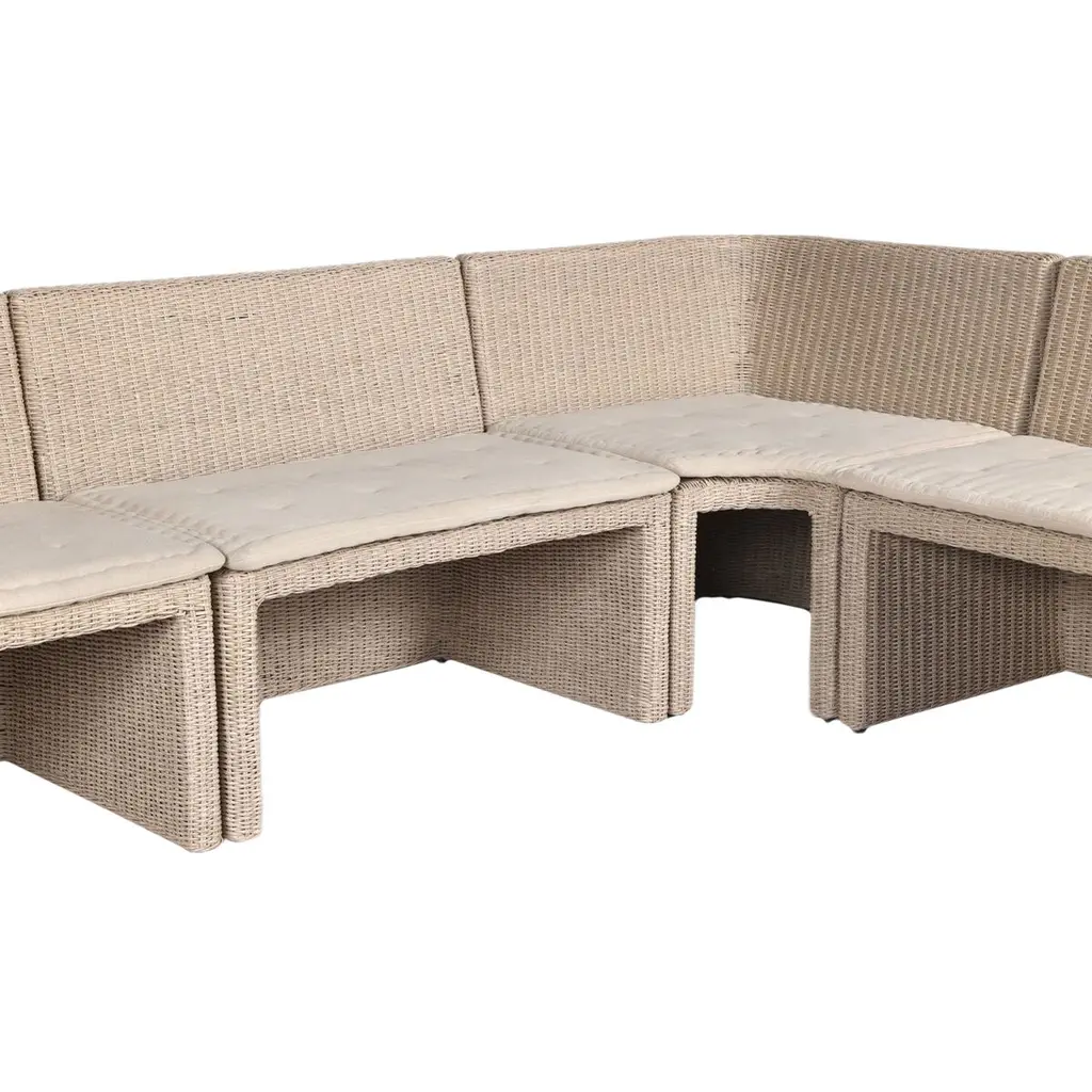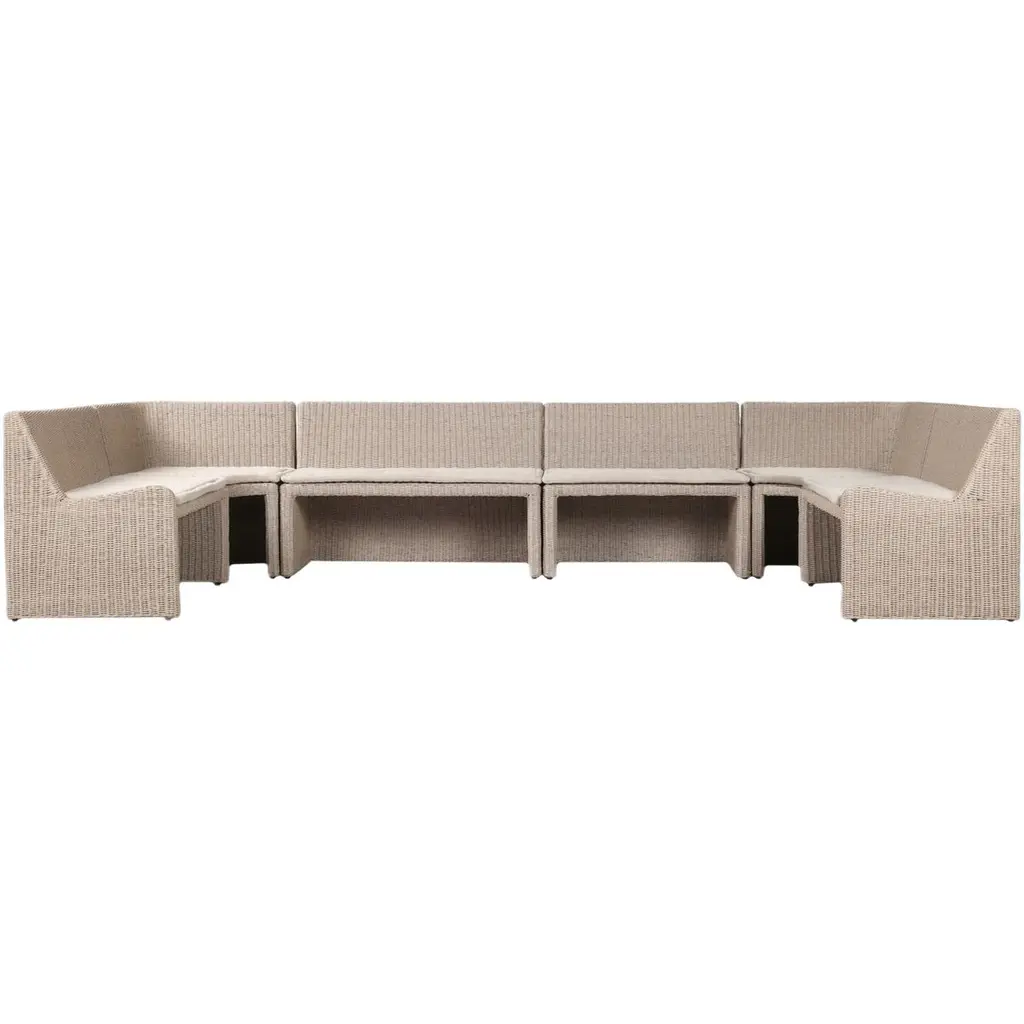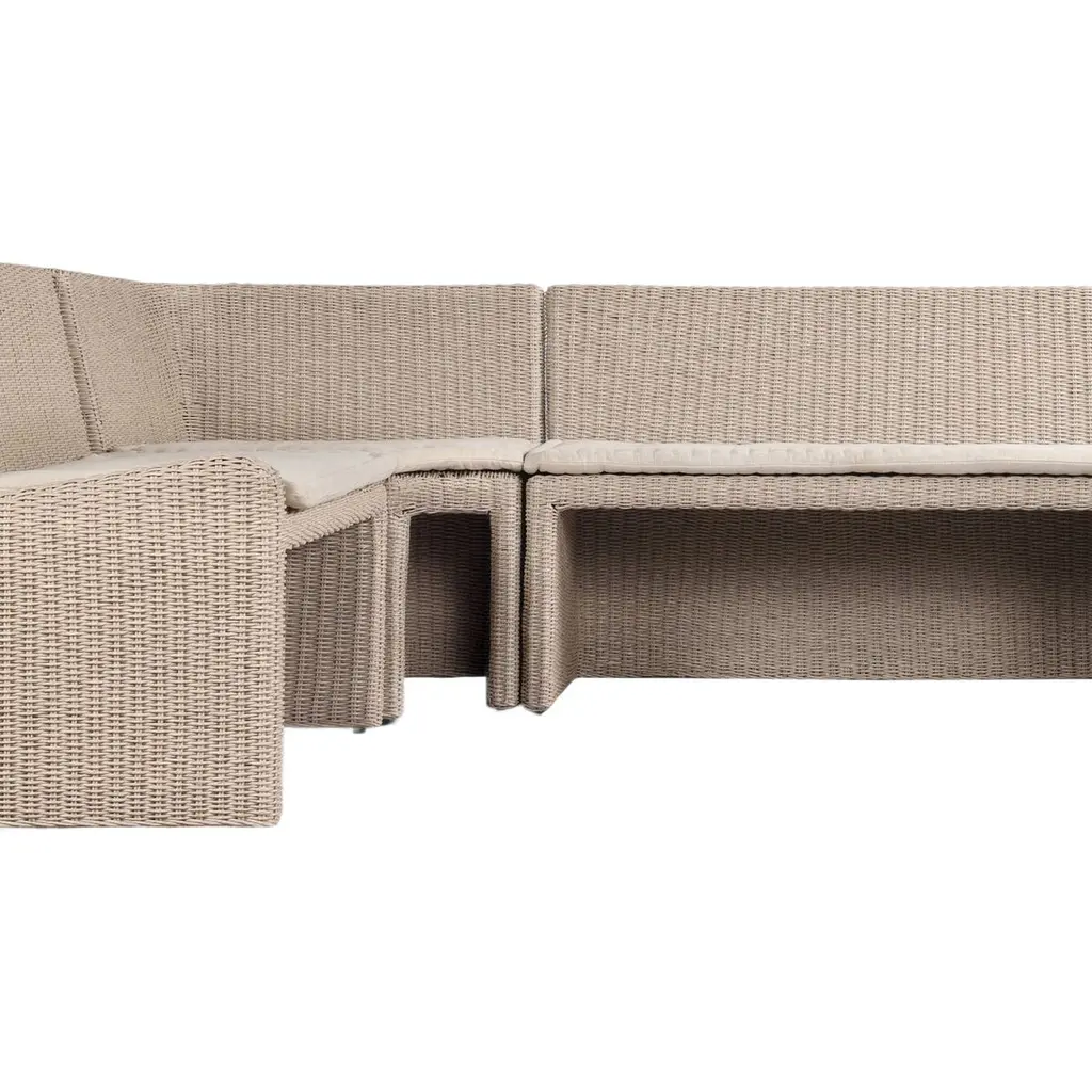 Antique-inspired coastal style. Rattan introduces varying natural shades and texture to this dining bench, and the frame's soft lines and fabric cushion invite a comfortable sit. Option to style alone or pair with other pieces in the collection. A design collaboration by Amber Lewis and Four Hands.