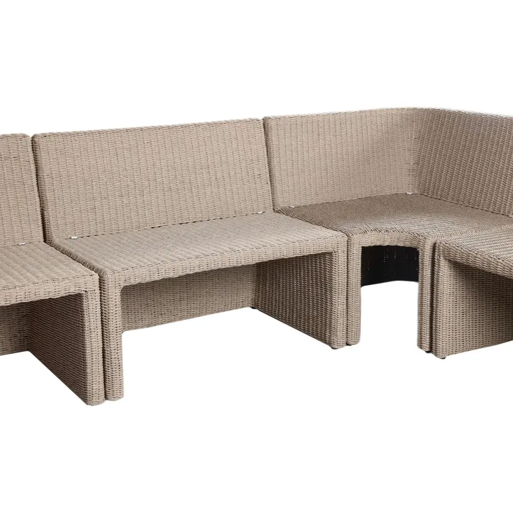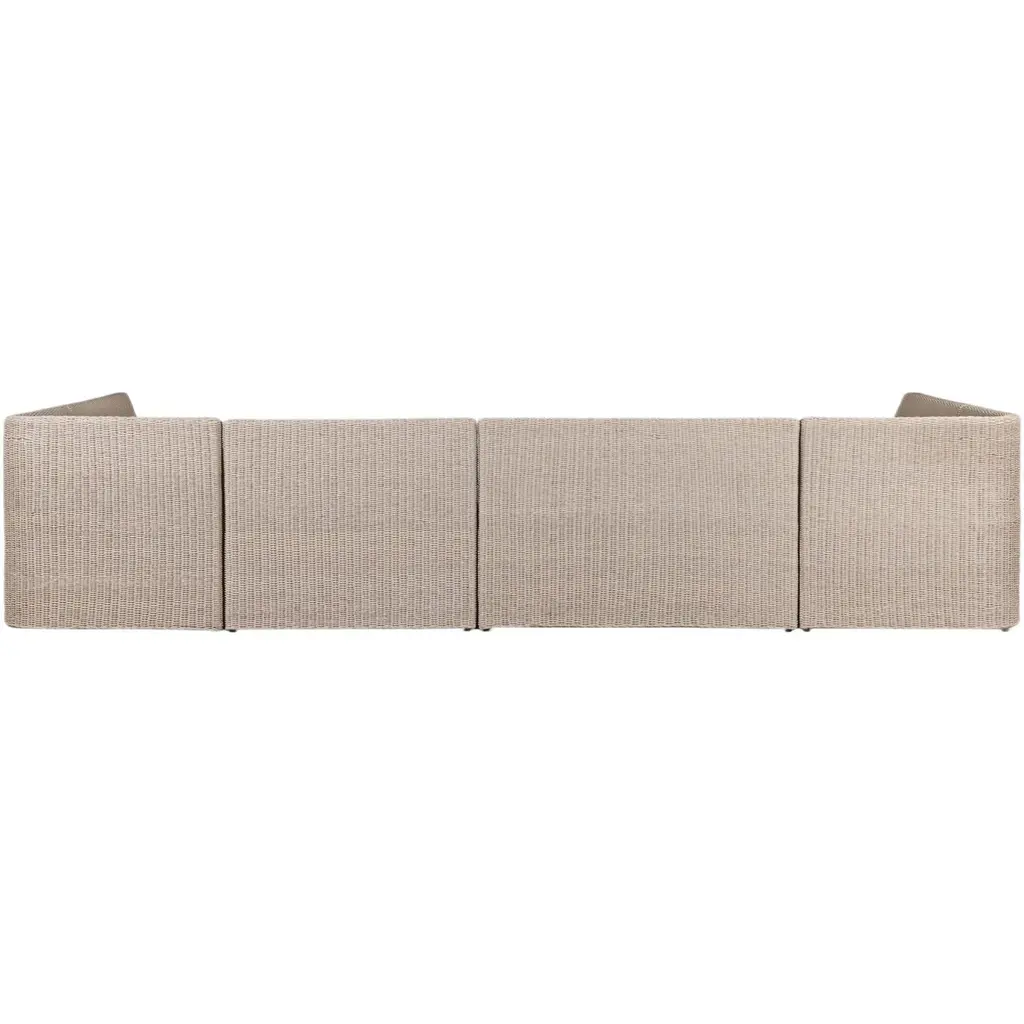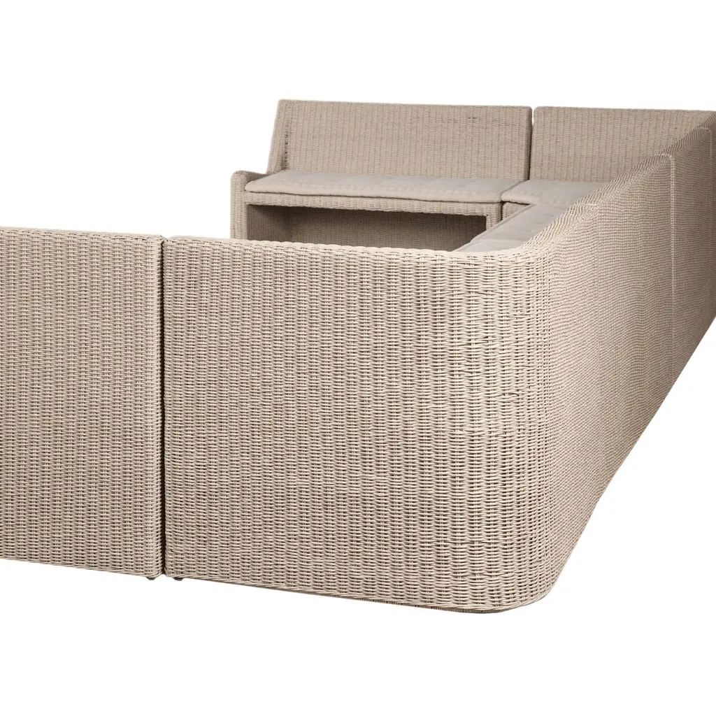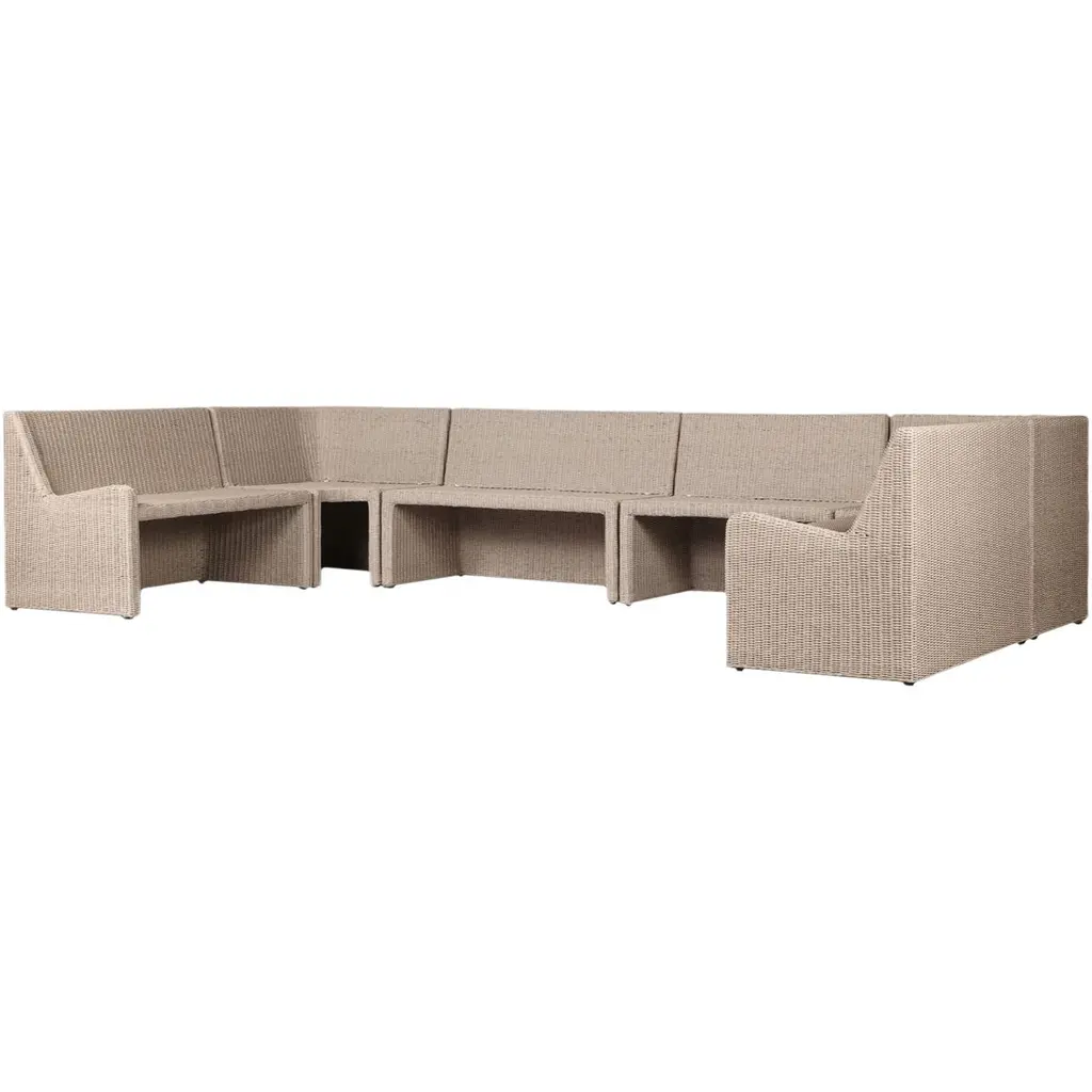 Antique-inspired coastal style. Rattan introduces varying natural shades and texture to this dining bench, and the frame's soft lines and fabric cushion invite a comfortable sit. Option to style alone or pair with other pieces in the collection. A design collaboration by Amber Lewis and Four Hands.
