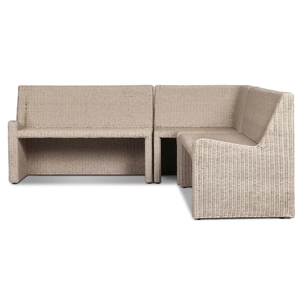 Senna Vintage White Outdoor Dining Banquette L-Shape - Left Arm Facing - 106"