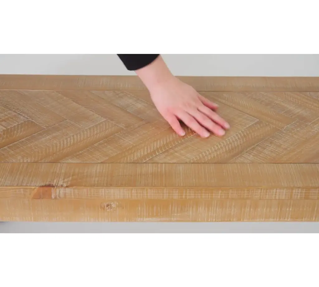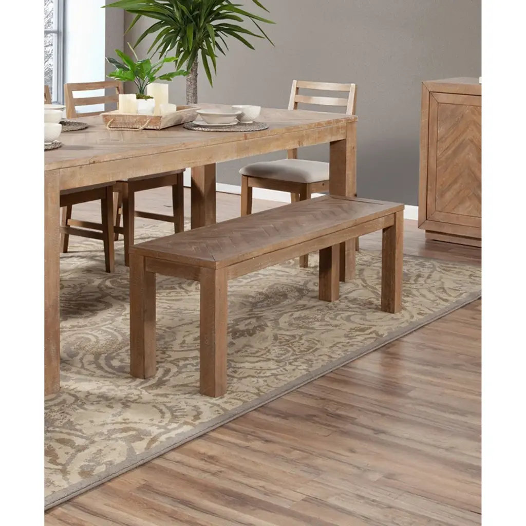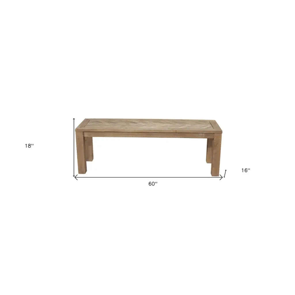 Herringbone inlay takes this classic bench from clean and simple to stylish and elevated. It's made from solid pine and engineered wood with a versatile light brown finish that shows off the wood's natural grain color variation. The straight legs add a traditional touch, while the structured silhouette contributes to the heavyweight design, which has a weight capacity of 500lbs. Ideal for offering a place to put on shoes in the entryway, a spare seat at the end of your bed, or a backless seat in the dining room, this bench's versatility is all about how you style it.