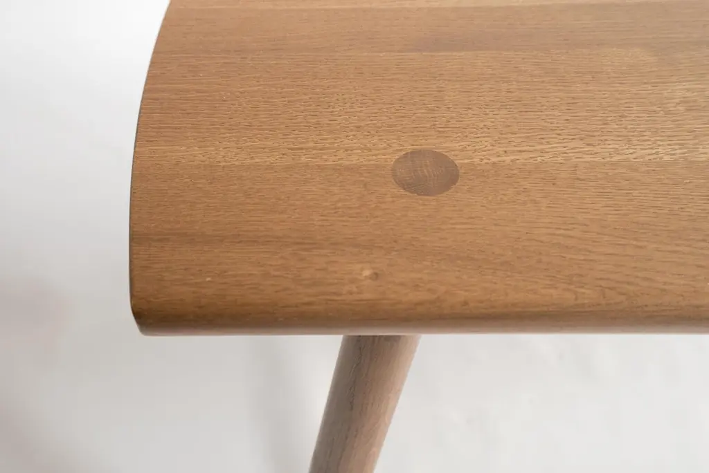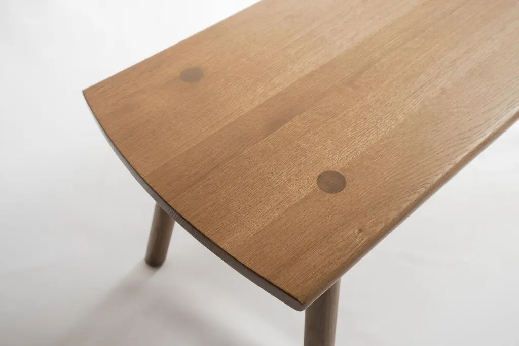 The Sol Bench is made with traditional joinery techniques with visibly exposed tenons, finished in our house-made tenna oil. Designed as a dining bench, it can also be used in the living room, as a display table, or under a window sill.Solid white oakHandcrafted using traditional joinery without nails or screwsWe make each piece by hand from solid wood, not veneer or engineered wood. Because every tree is different, you may see variations in color and pattern. Our tenna oil and water based finishes are resistant to spills and stains and will sustain for years with proper maintenance. Our pieces have been used in a variety of hospitality settings from hotels to retail spaces. 42”W x 18”D x 17.5”HSeat Depth: 15.25”Swatches available upon request.