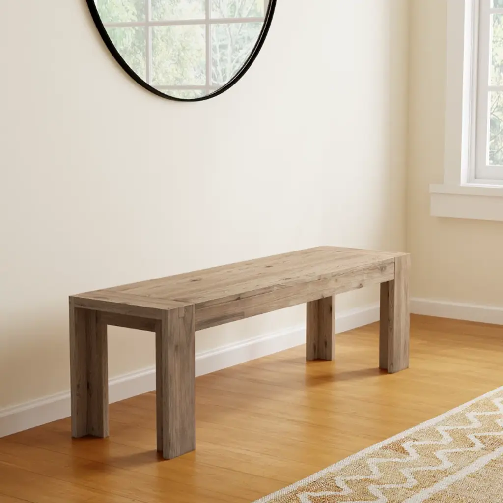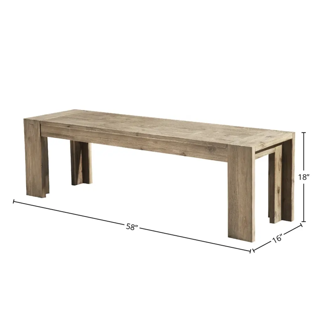 Are you looking to create an on-trend cottage dining ensemble, but don't know where to start? This dining bench is a great option for settling down to a family meal. The beauty of acacia solids is highlighted by the sandblasted finish. The clean-lined silhouette features a fixed top and distinctive leg.