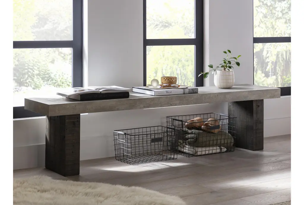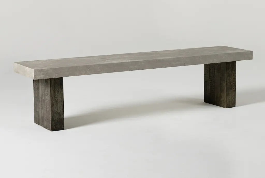 Titan 74" Faux Concrete Reclaimed Wood Dining Bench | Backless | Entryway