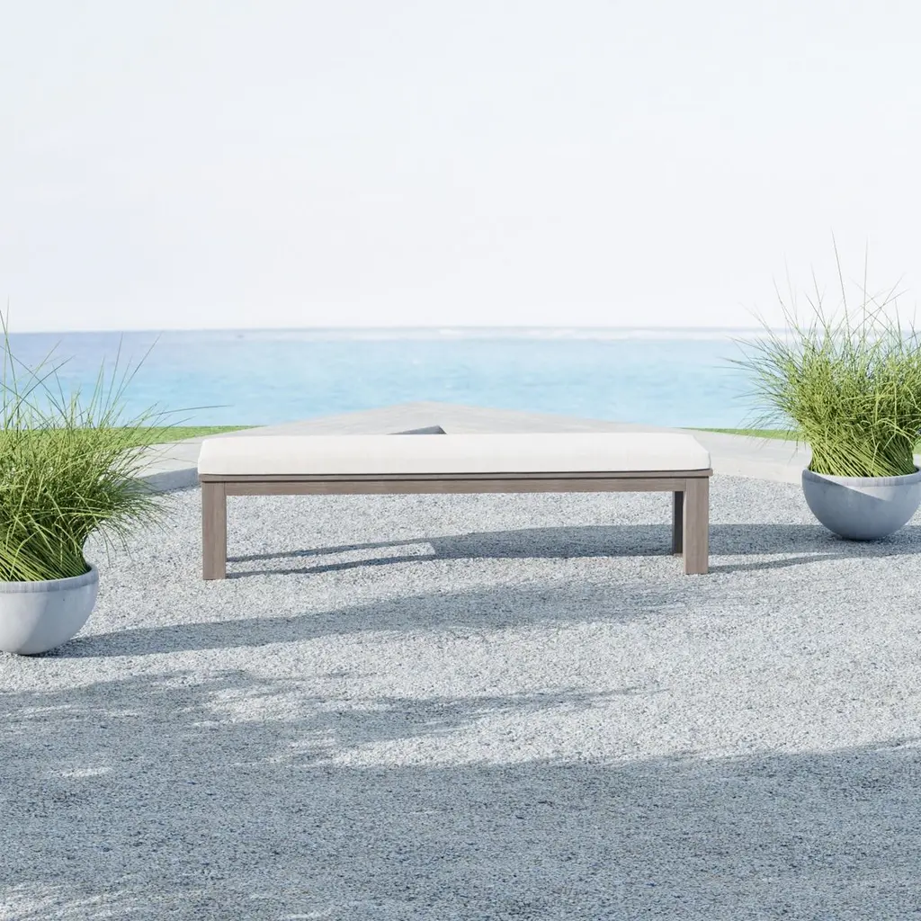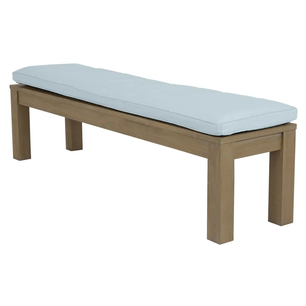 The Verian Teak Dining Bench offers a beautifully contemporary take on classic teak furnishings. The unique multi-step finish gives the natural wood a warm grey color, perfectly complementing other collections for a curated Verian design. Constructed of 100% solid teak wood, these excellently engineered pieces develop a lovely patina over time. Their natural grooves and subtle rustic features lend a unique look and character to each item - no two pieces are exactly alike. Teak wood, known for its durability and natural moisture-resistant oils, is an excellent choice for outdoor furniture that will stand the test of time. Some assembly is required.