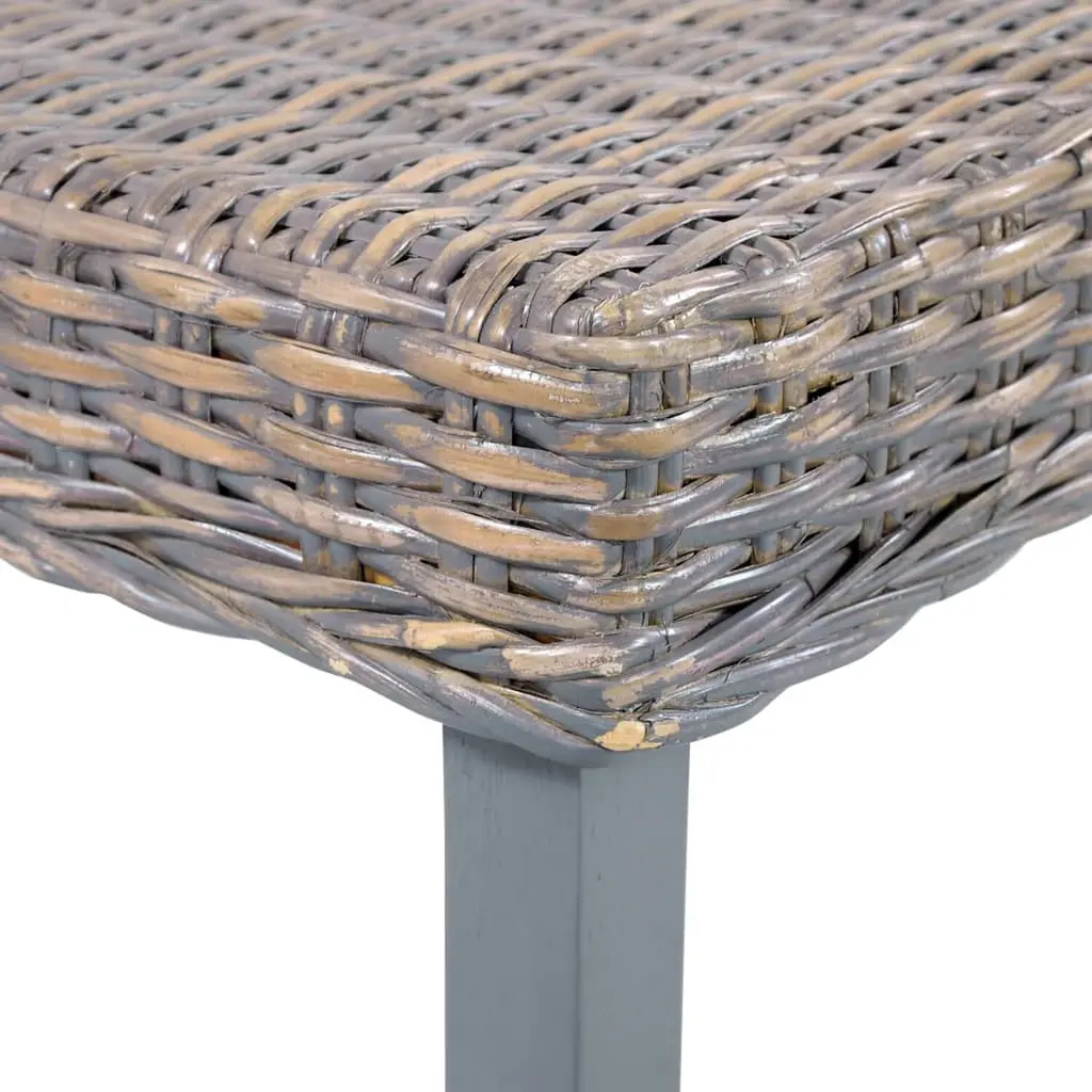 Vidaxl Bench Gray Natural Natural Kubu Rattan, Solid Mango Wood 43.3 In
