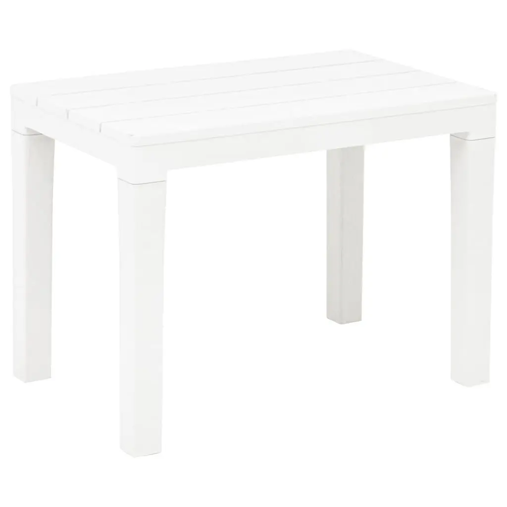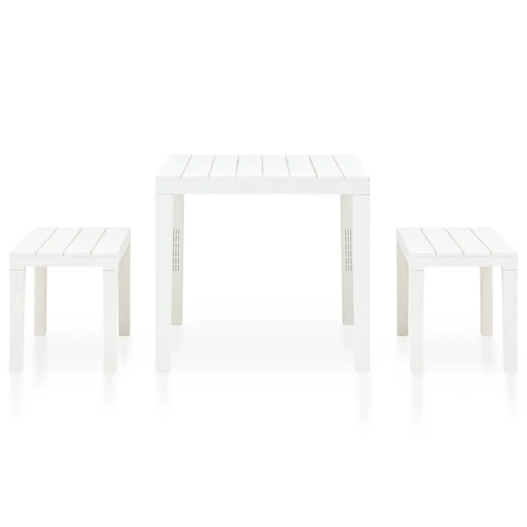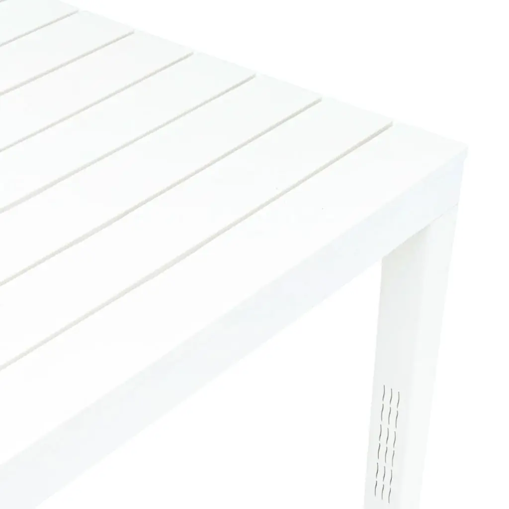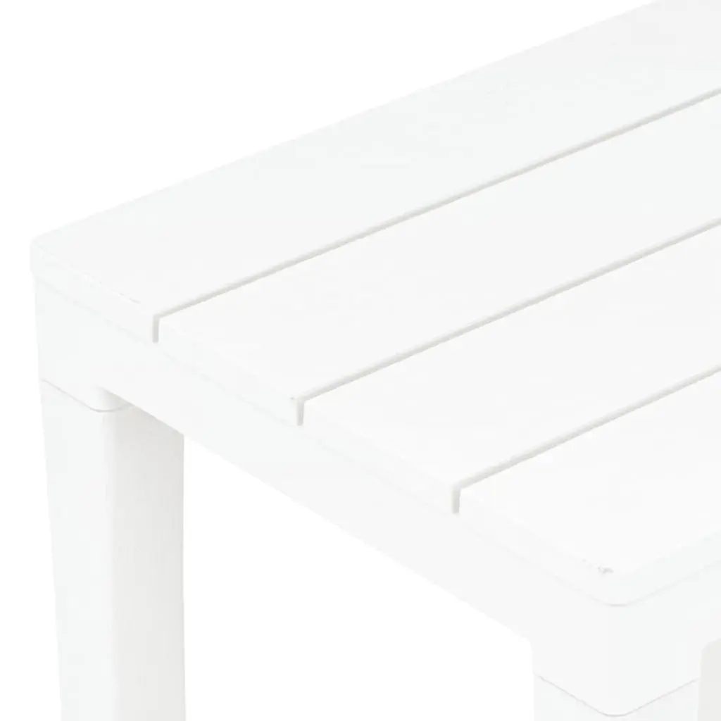 This garden dining set is stylish and perfect for outdoor areas. It has a big rectangular table and two snug benches, ideal for enjoying meals and gatherings outside. Weather-resistant Build: Each piece is made from synthetic plastic, toughing it out in any weather. No worry about your furniture, it's built to last.Modern Design: The clean, minimalist lines of this dining set fit well with all outdoor styles, boosting the look of your patio or garden. That sleek white finish? Totally chic.Lightweight Convenience: Easy to move and set up, letting you create the perfect atmosphere for any occasion, whether it’s a laid-back brunch or a lively barbecue.Spacious for All: With enough room for up to four people, this table is great for family dinners or fun meals with friends, making lovely memories outside.Easy to Clean: The smooth surface is a breeze to clean; just a quick wipe with a damp cloth keeps it looking sharp, perfect for busy lifestyles.