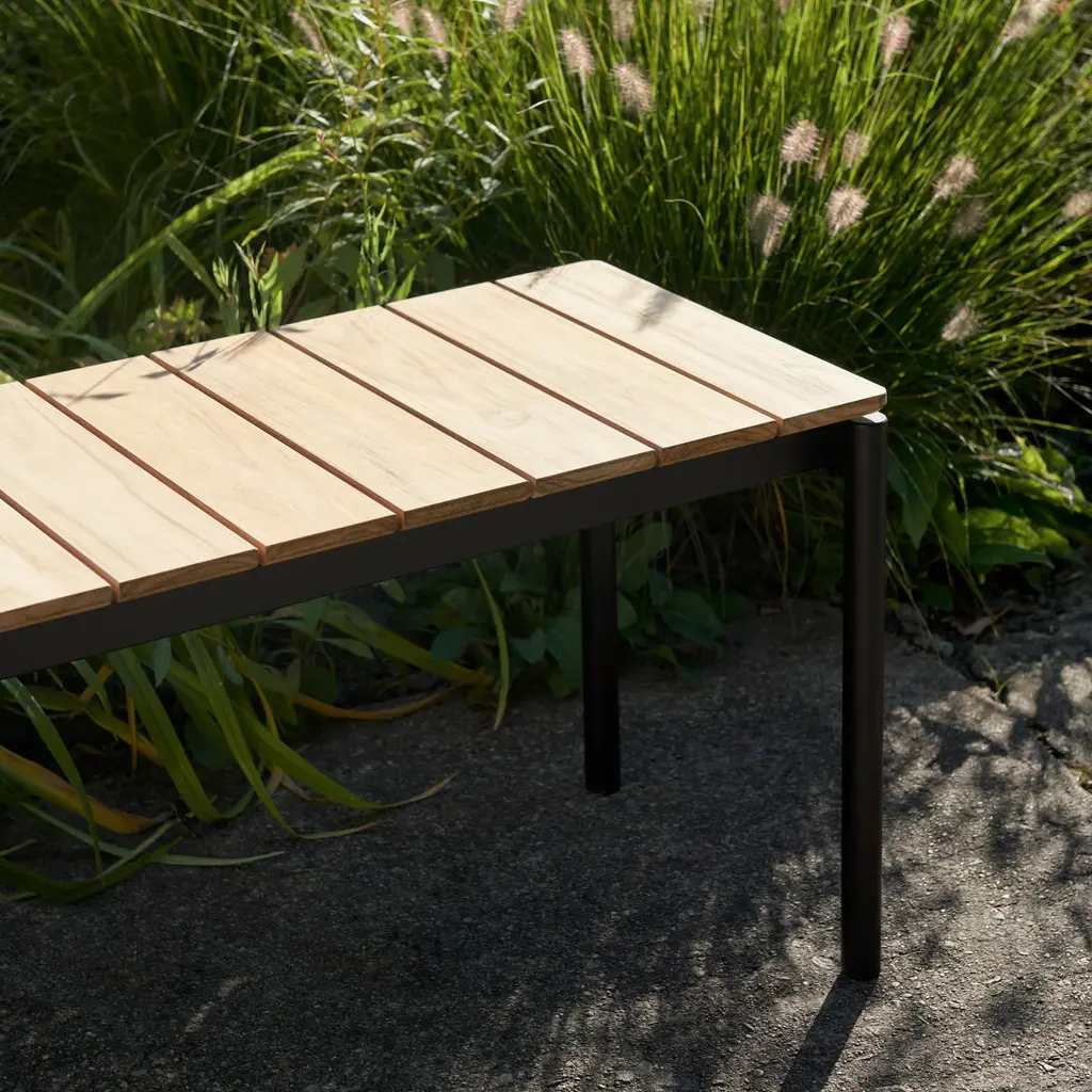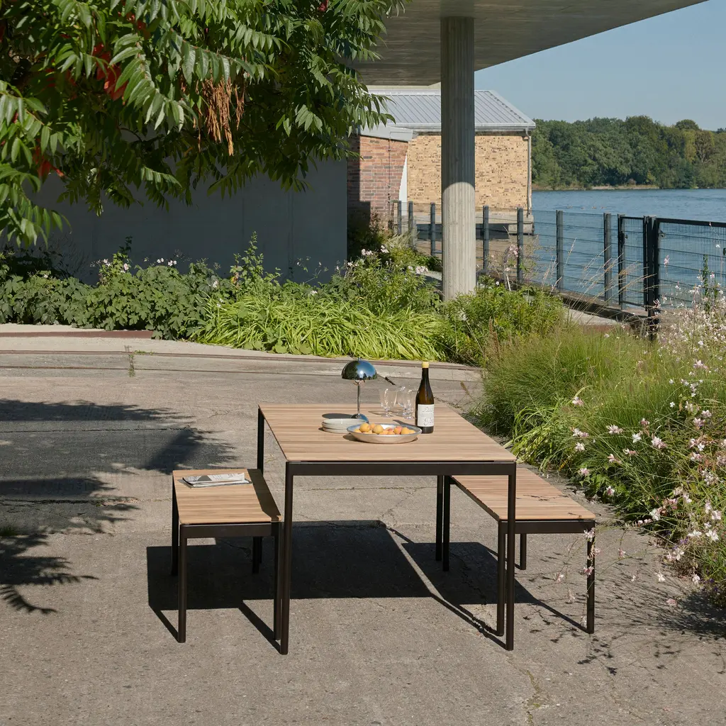 As a companion piece to Anderssen & Voll’s alfresco dining table or deployed alone as a seating option, Ville Bench embodies the collection’s versatile spirit and is available in 2 sizes. With a crisp powder-coated steel framework, the warm and inviting surface in natural FSC-certified teak can be oiled or left untreated to gracefully weather, as per individual preference.