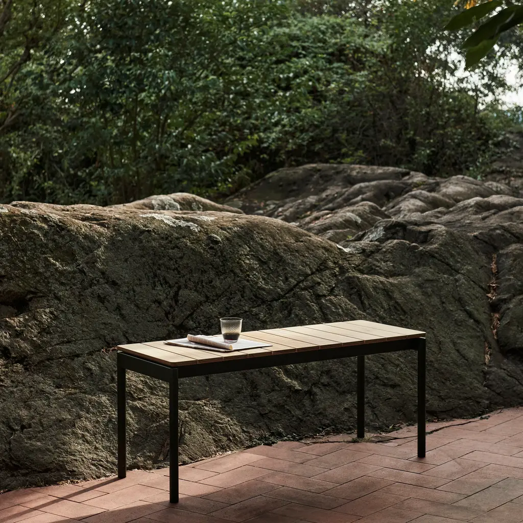 As a companion piece to Anderssen & Voll’s alfresco dining table or deployed alone as a seating option, Ville Bench embodies the collection’s versatile spirit and is available in 2 sizes. With a crisp powder-coated steel framework, the warm and inviting surface in natural FSC-certified teak can be oiled or left untreated to gracefully weather, as per individual preference.