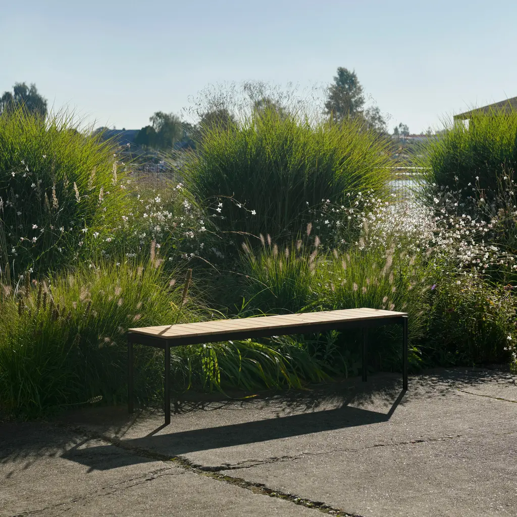 As a companion piece to Anderssen & Voll’s alfresco dining table or deployed alone as a seating option, Ville Bench embodies the collection’s versatile spirit and is available in 2 sizes. With a crisp powder-coated steel framework, the warm and inviting surface in natural FSC-certified teak can be oiled or left untreated to gracefully weather, as per individual preference.