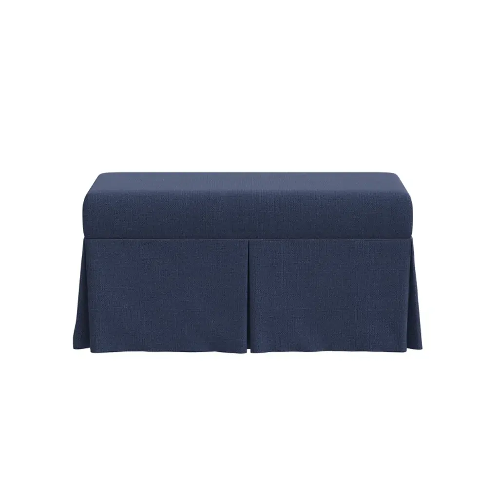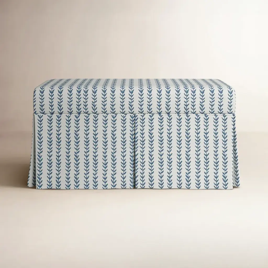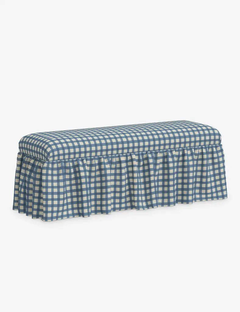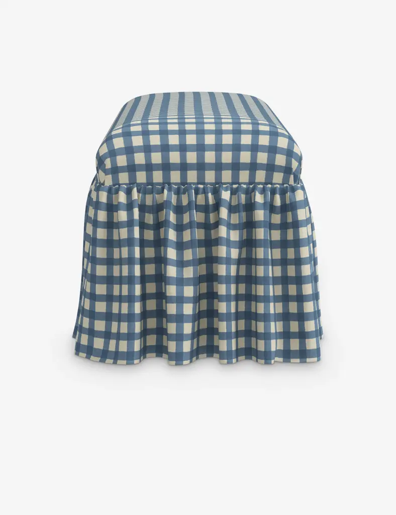 Style seating for relaxed elegance. The Wilm bench features a cushioned seat with a ruffled skirt, bringing volume and texture with an effortless drape. Bespoke upholstery lets you tailor the look to your space.