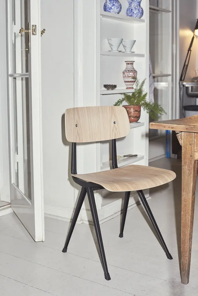Recognized for its graceful simplicity, the Result Chair was a Dutch mainstay created by Friso Kramer and Wim Rietveld in the 1950s. Today, HAY and Ahrend have reimagined it as a lightweight, versatile everyday chair for the dining room or home office.