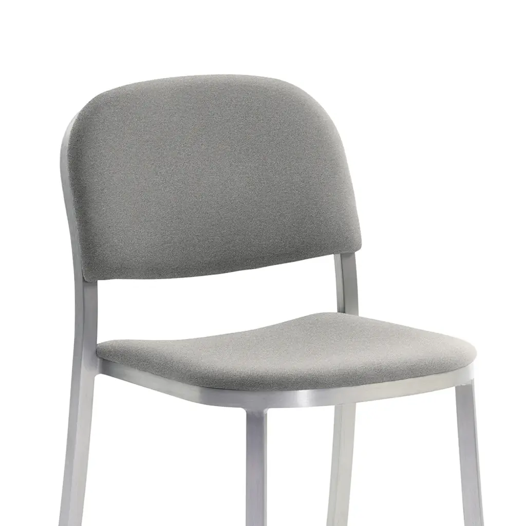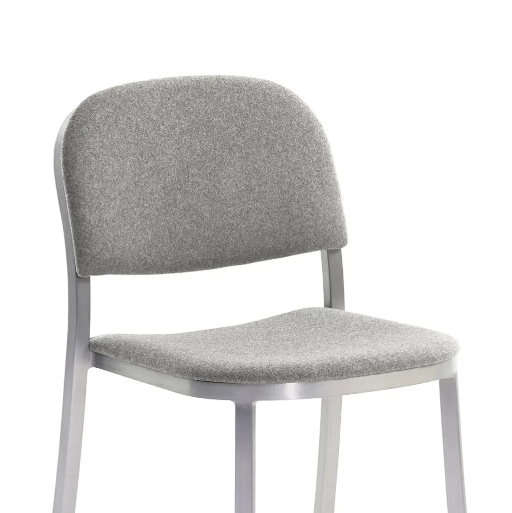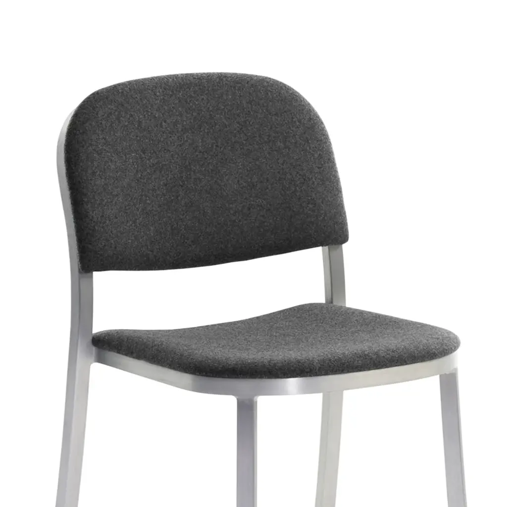 1 Inch by Jasper Morrison, 2017 For the 1 Inch collection, Jasper Morrison tapped into Emeco’s heritage in hand crafting 80% recycled aluminum, and leveraged its signature strength, light weight, and sustainability. The aluminum frame, clear anodized or black powder coated, is combined with upholstered seats in leather or textile for a wide variety of applications. COM/COL also offered - please contact us for custom textiles. Made in USA. Chairs and armchairs stack 6 high. Emeco's in-house powder coat colors are available for 1 Inch chair and stool frames - please contact us for details.