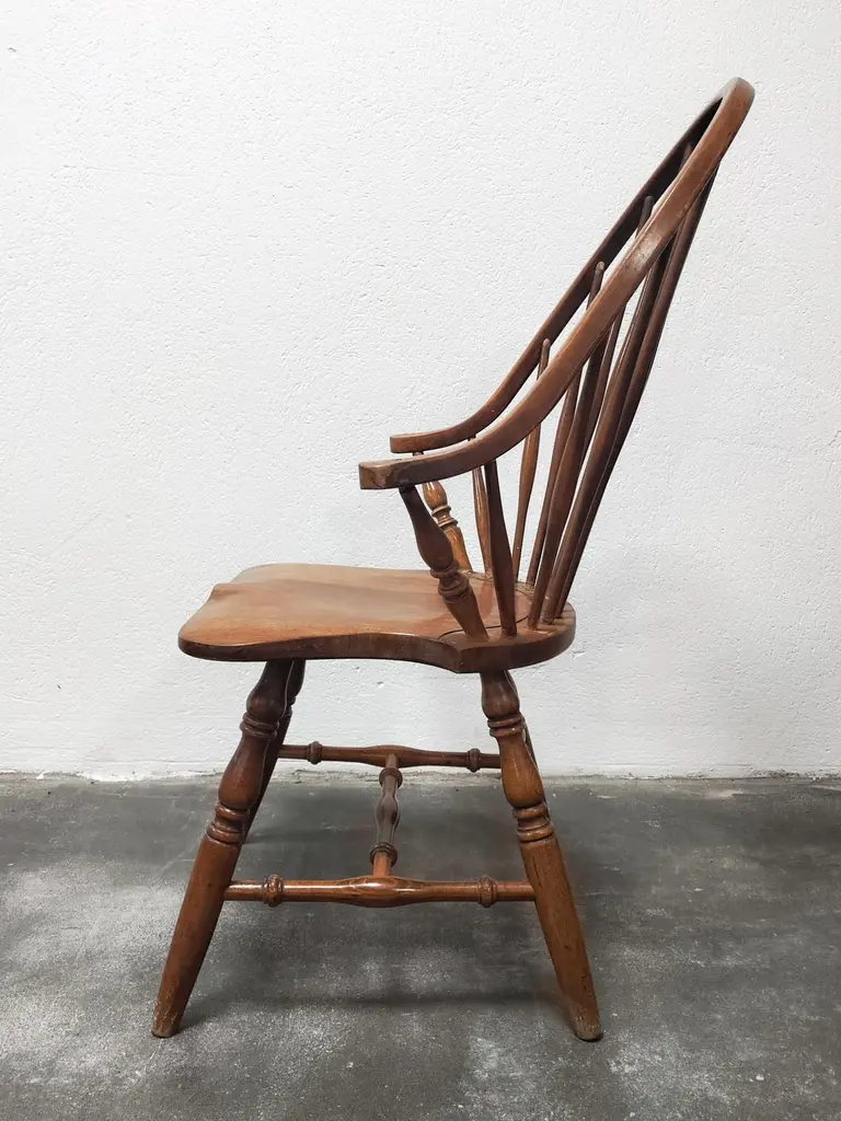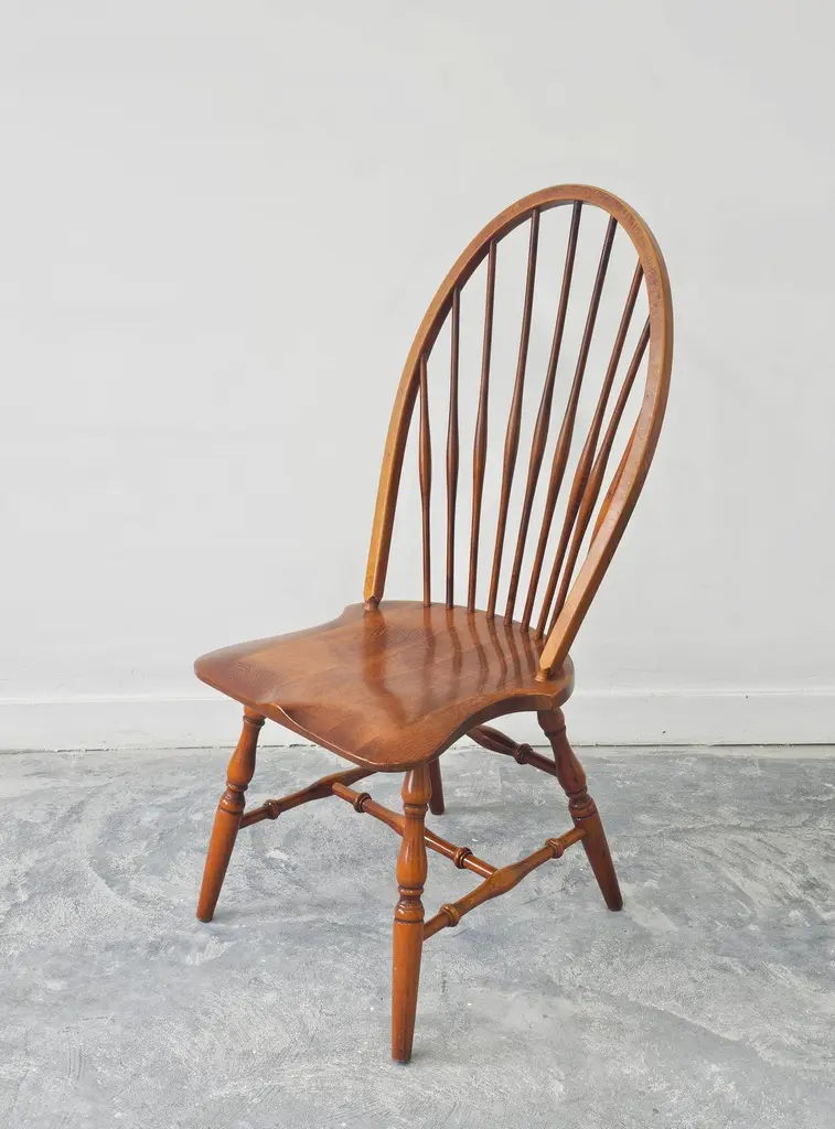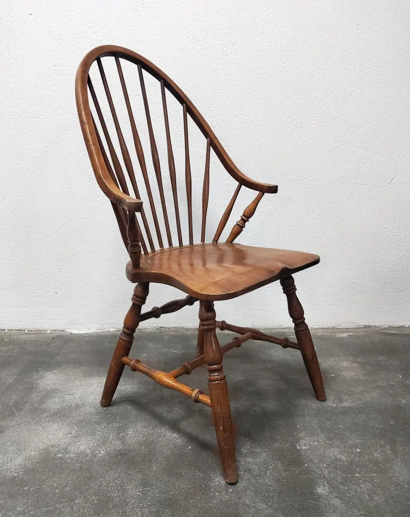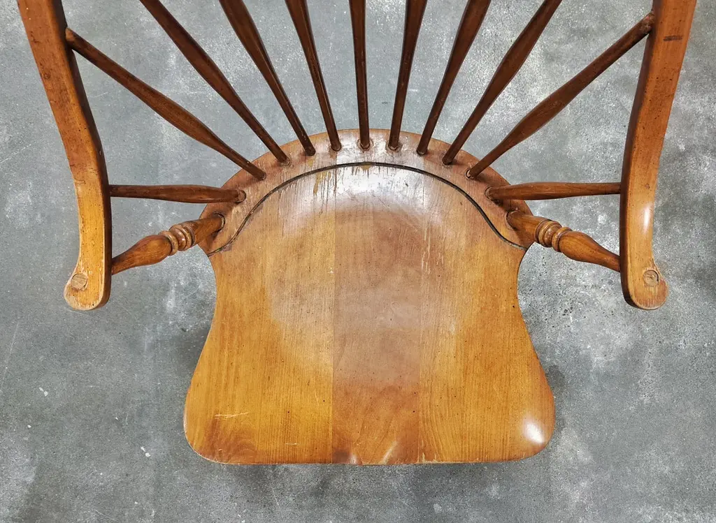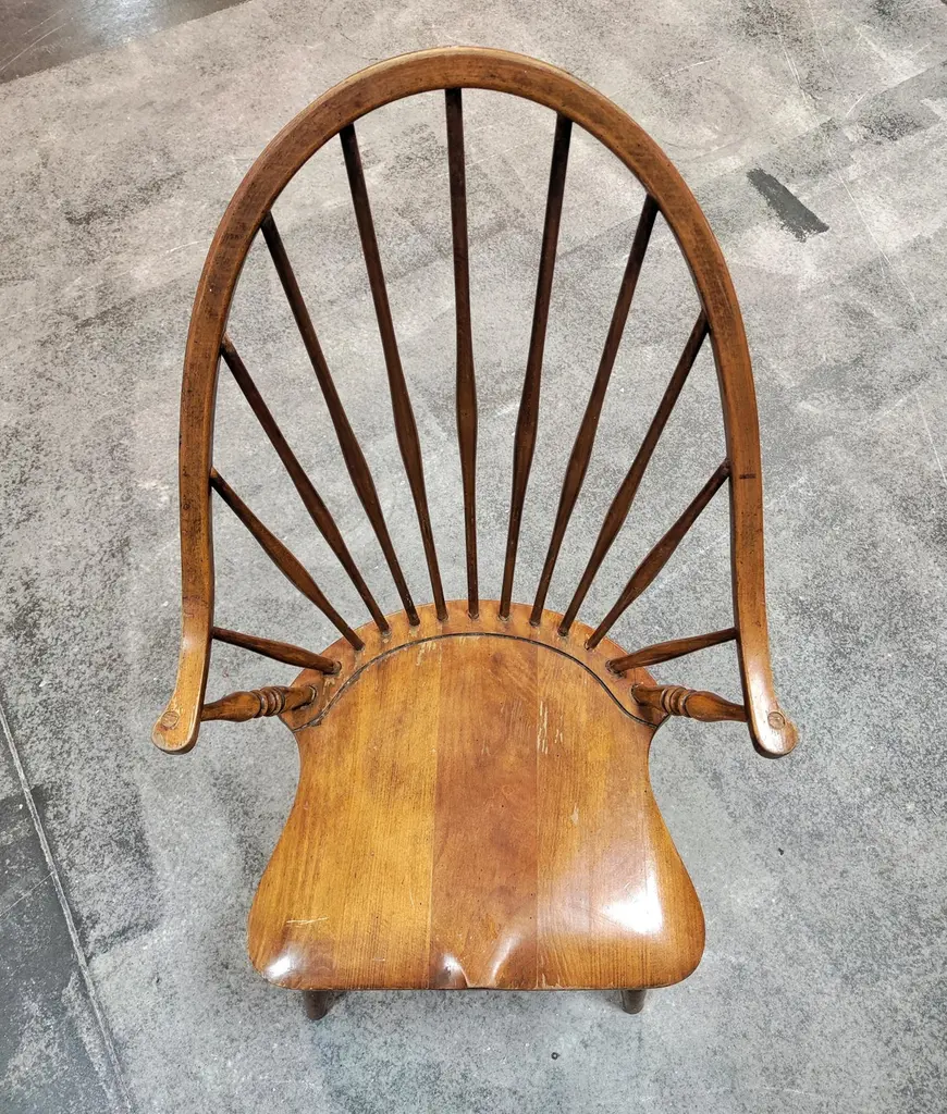 In this listing you will find 20 Windsor dining chairs and armchair done in solid Beech, manufactured in Yugoslavia in 1950s. There is 20 chairs available, out of which 9 are with and 11 without the armrests.They feature tall spindle back, making it one of the rarest models in the long line of Windsor chairs. The chair is done in solid beech wood and it is pretty heavy. Sings of time and use can be seen - dried out varnish, small chips and dents, fading. Despite all of it, chairs are sturdy and ready for use. Each chair has a stamp on the back of its seat that claims its origin - MADE IN YUGOSLAVIA. Please check the listed pictures to get an idea. If you are interested in purchasing more than one piece, please reach out for the adjusted shipping quote.