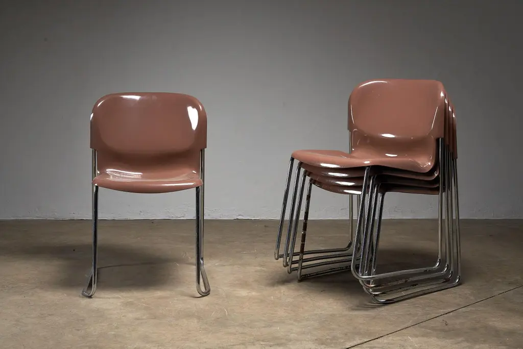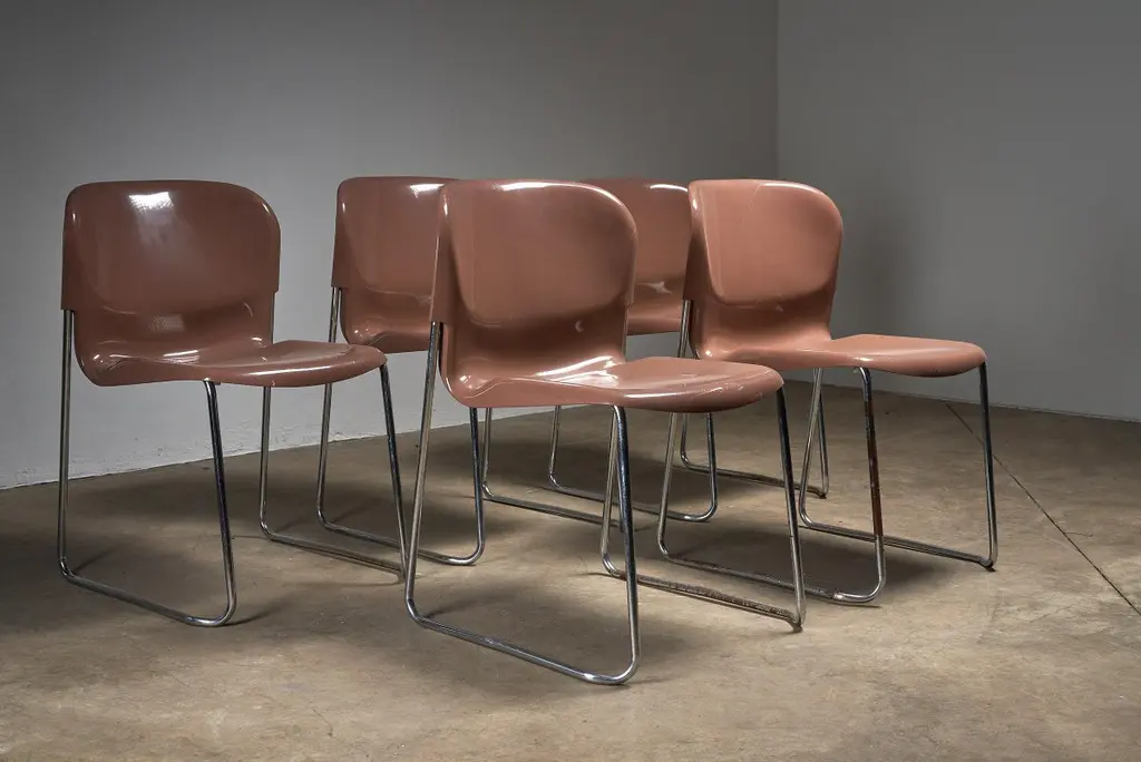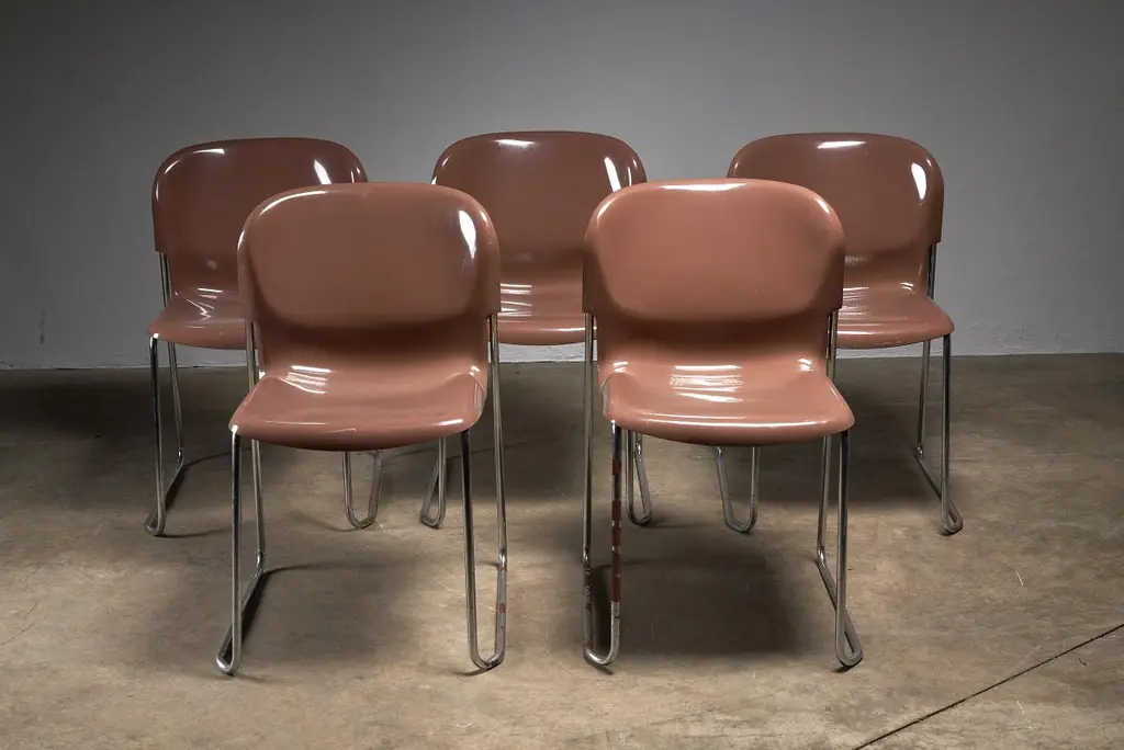 1 Of 5 Sm Swing Chairs By Gerd Lange For Drabert, 1970s Brown Stacking Chairs