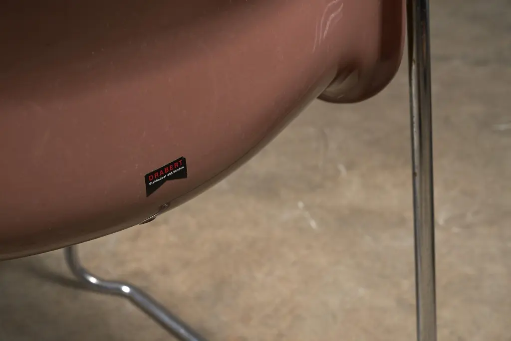 Add a touch of 1970s modernism to your space with this set of Swing chairs by Drabert. These sleek chairs feature a distinctive brown plastic seat and backrest, perfectly complemented by a chrome-plated metal frame. Designed with both style and functionality in mind, these chairs are not only visually appealing but also practical—they stack easily, making them ideal for spaces that require flexibility. Available individually, there are five chairs in total, allowing you to purchase as many as needed. Whether used in a dining area, office, or conference room, these Drabert chairs bring a vintage aesthetic with a modern twist, embodying the perfect blend of form and function.