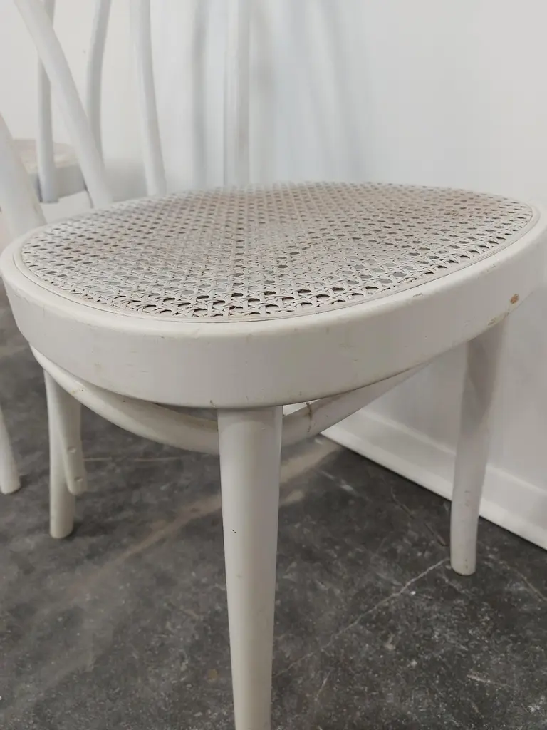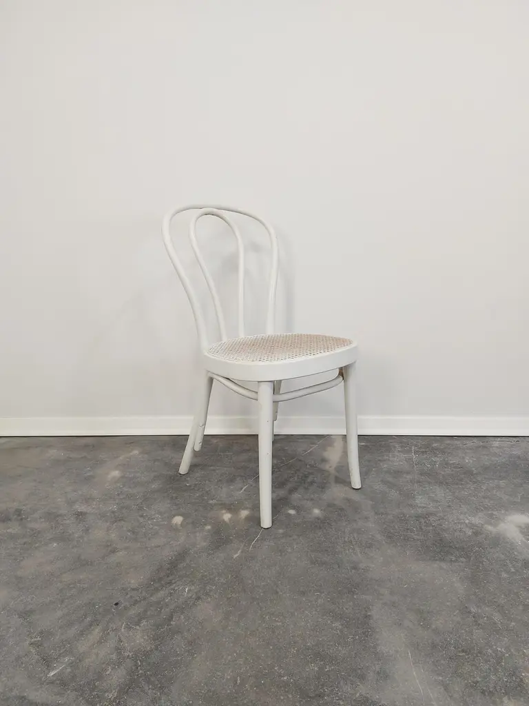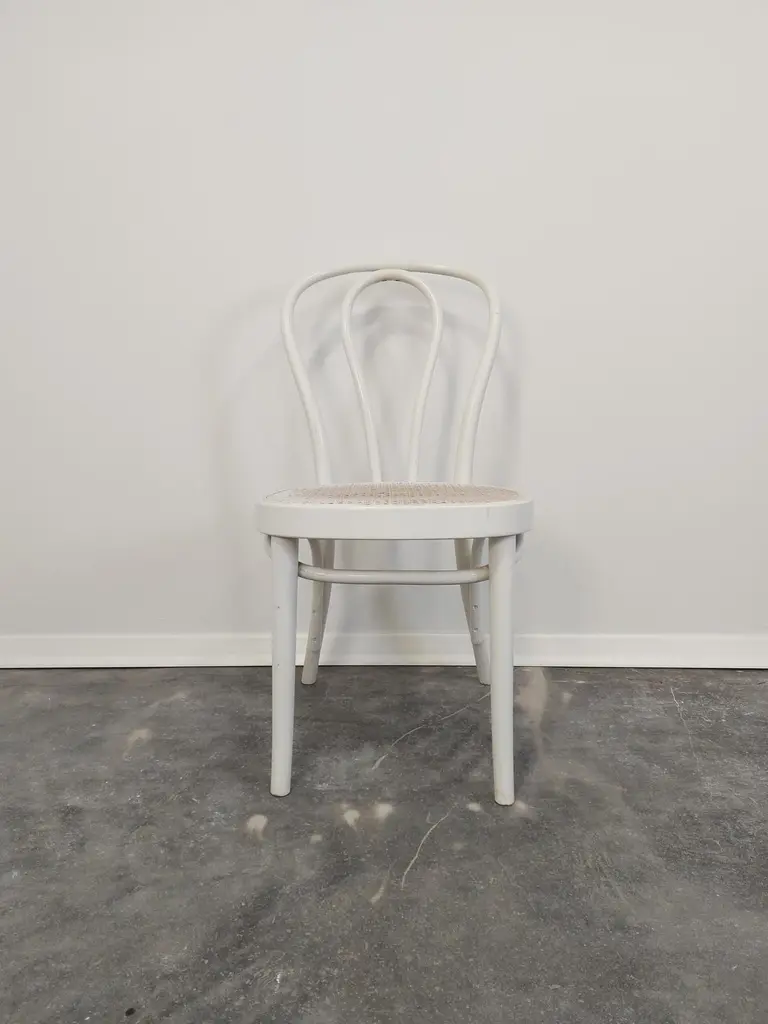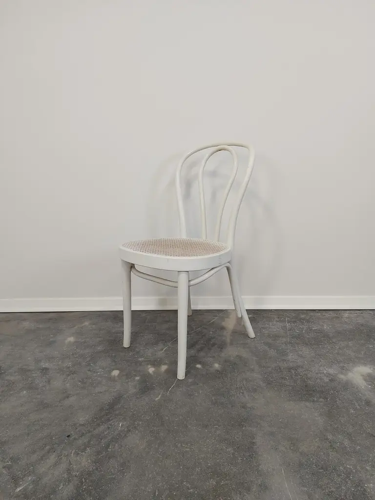 Bentwood cane Thonet No. 18 dining chair in vintage condition (well preserved).Production period: 1970sMaterials: Bentwood, caneLabel: STOL KamnikCondition: great, signs of use, undamagedColour: WhitePrice is for one chair.