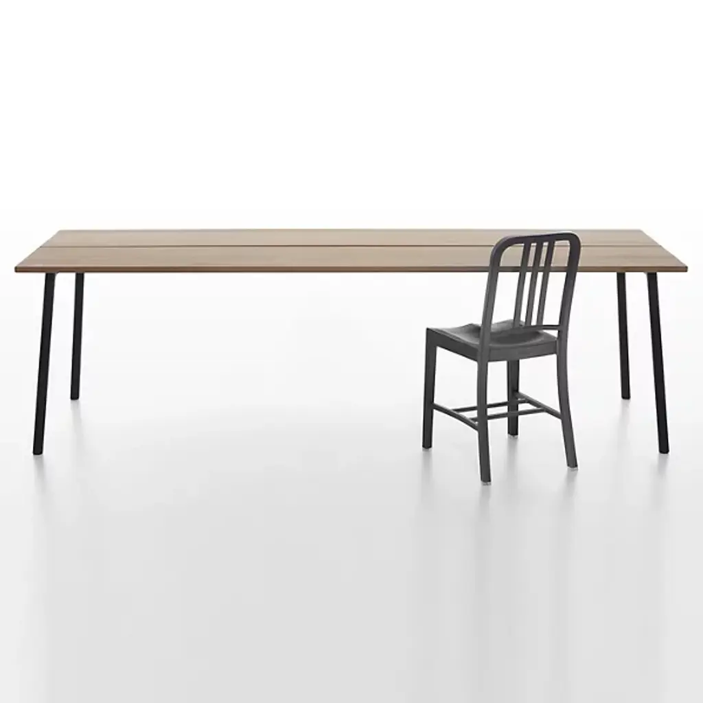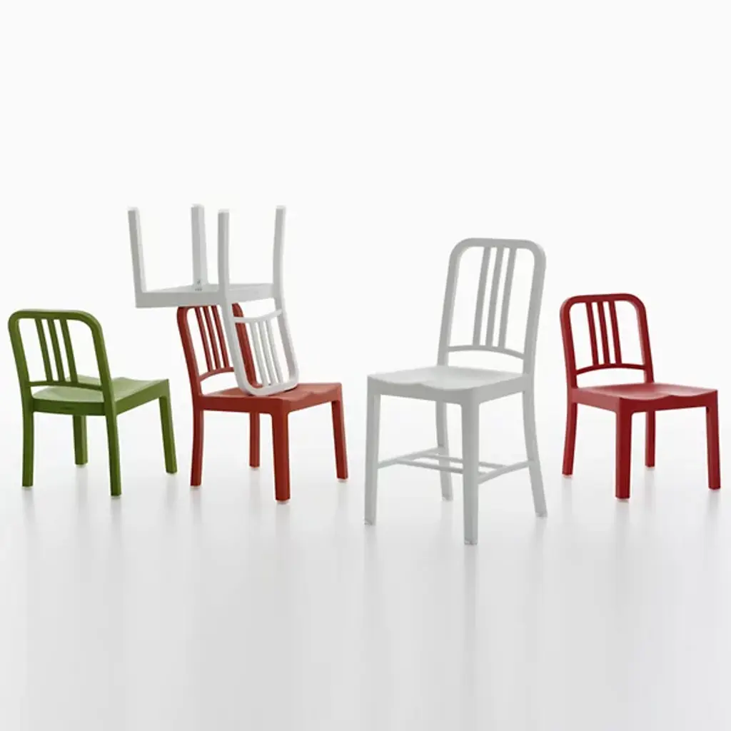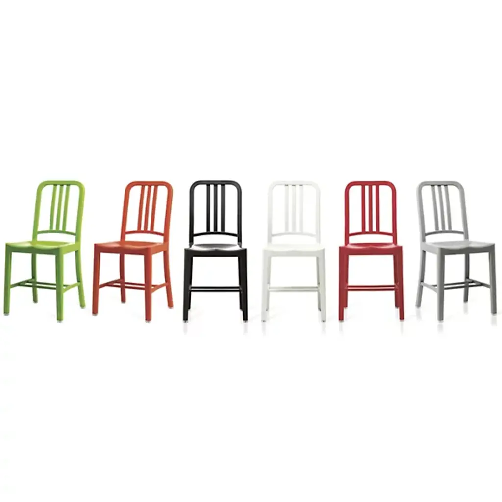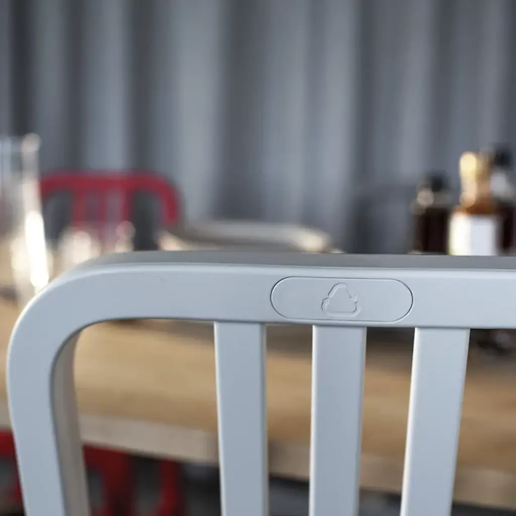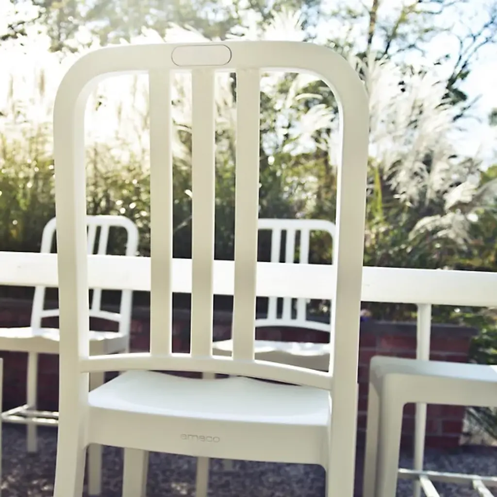 The 111 Navy® Chair carries the iconic silhouette of the original Navy® Chair built by Emeco, circa 1944, for use in submarines. Driven by awareness of today's environmental problems, Emeco and Coca Cola partnered together to form a chair made of up-cycled consumer waste. The 111 Navy® Chair is made of 111 recycled PET bottles, finished with a selection of versatile colors to complement modern-contemporary spaces.