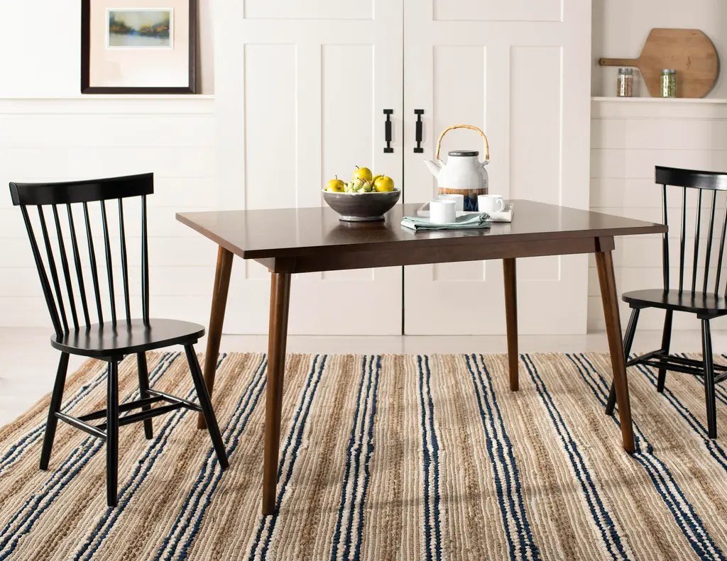 The chair takes it's cues from the classic American country home style but strips away any excess mentation Clean lines, simple lines and fresh colors update this airy addition to casual dining rooms. Wood is a natural material with variations of color shade, configuration, streaks, and grain structure. Each individual piece of furniture has characteristic markings that will differ from photo and showroom samples. Regular attention and maintenance of fine furniture can ensure it's beauty for years to come. Always use felt pads under all articles to prevent discoloration or softening of the lacquer. Plastic and rubber bases on items can discolor wood. Some assembly required.