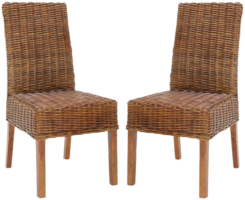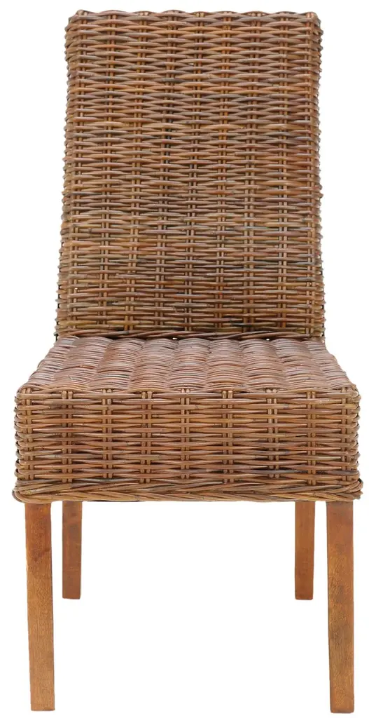 The transitional rattan Side Chair brings a soft touch to contemporary interiors in need of warmth. Crafted with mango wood and beautifully woven rattan finished in light brown, this durable chair is at home in dining rooms, kitchens and casual living spaces. (Sold in a set of two) Dust regularly with a soft, dry cloth. Never use oiled or treated cloths on lacquered finishes. Some finishes can be wiped with a damp (not wet) cloth, followed at once by rubbing with a dry cloth to remove fingerprints and smudges. For persistent spots, gently clean with a soft cloth and a solution of water and mild soap, make sure to wipe dry. Use adhesive felt pads, coasters and placemats to protect your furniture.