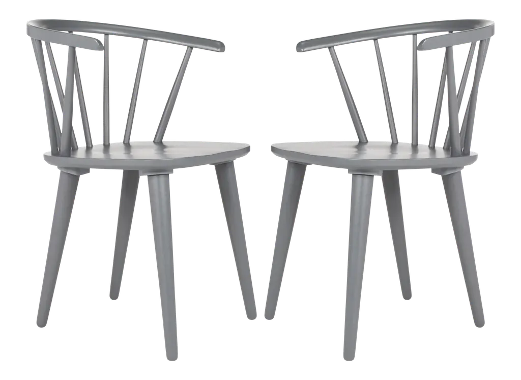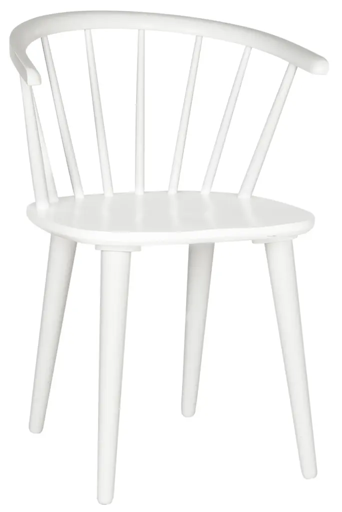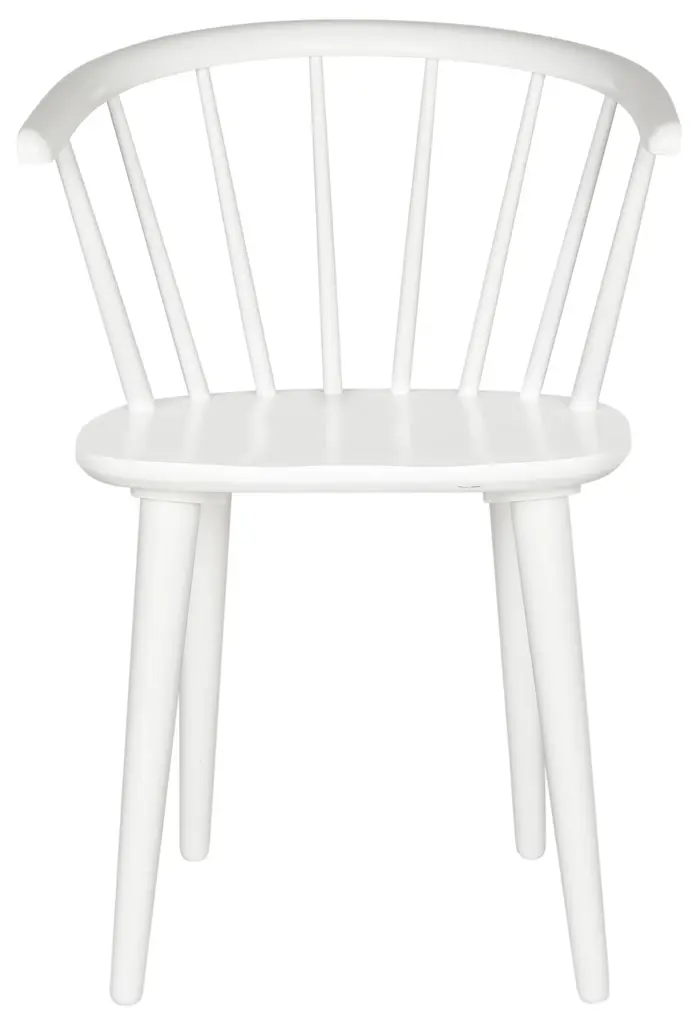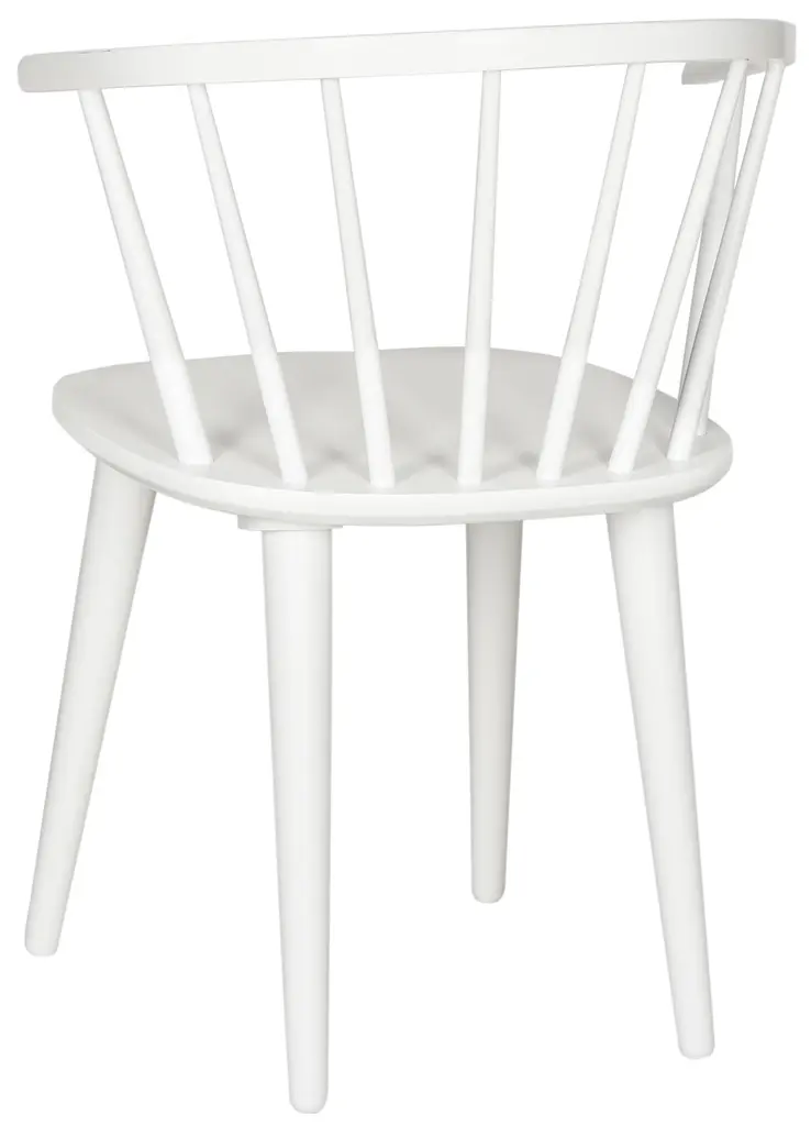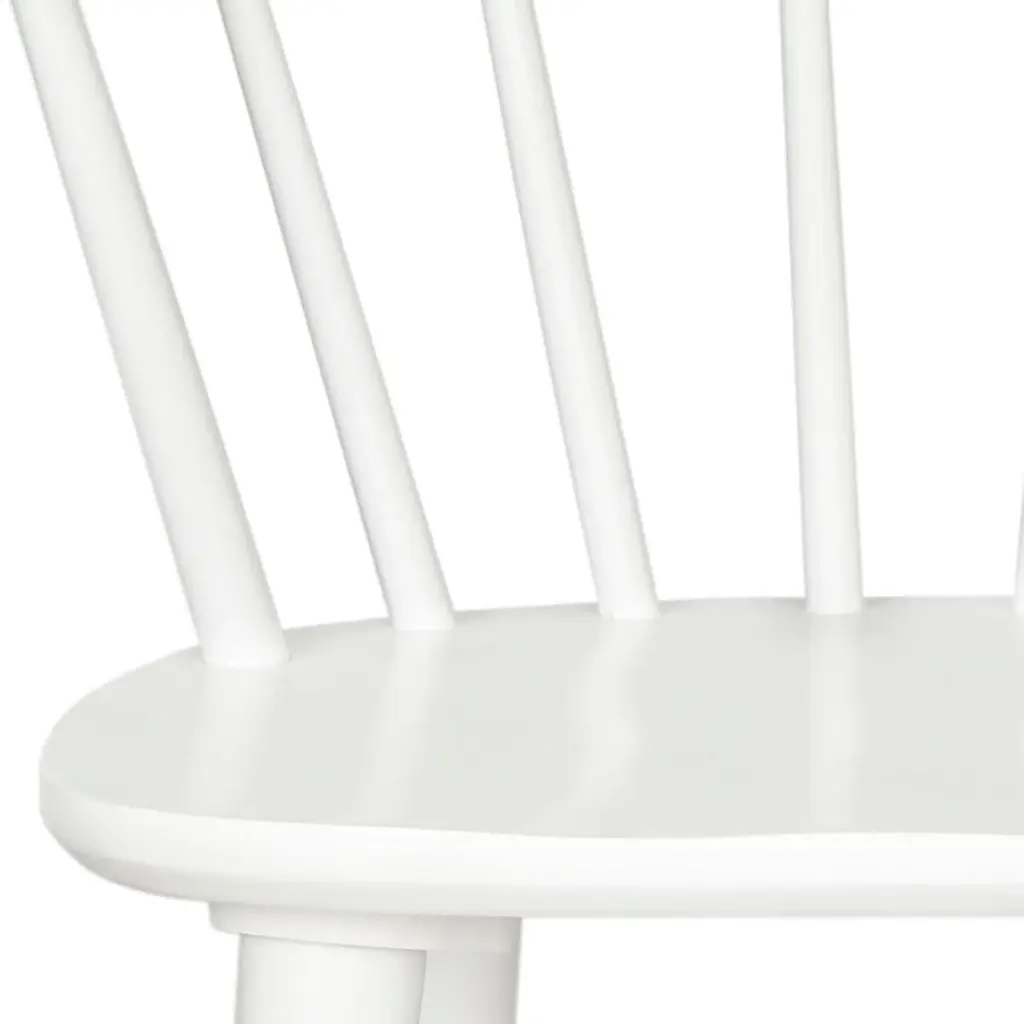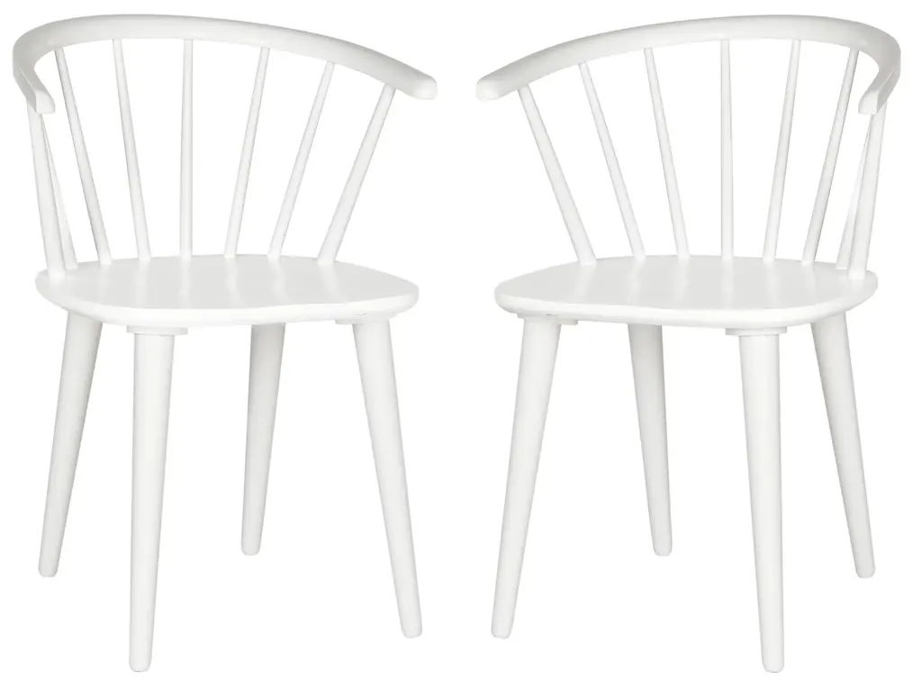 Inspired by the graceful curves of a antique captain’s chair, this set of two dining chairs is crafted of sustainable rubber wood and finished in white. With backrest spindles and splayed tapered legs, it brings transitional style to a colonial classic. Wood is a natural material with variations of color shade, configuration, streaks, and grain structure. Each individual piece of furniture has characteristic markings that will differ from photo and showroom samples. Regular attention and maintenance of fine furniture can ensure it's beauty for years to come. Always use felt pads under all articles to prevent discoloration or softening of the lacquer. Plastic and rubber bases on items can discolor wood. Some assembly required.