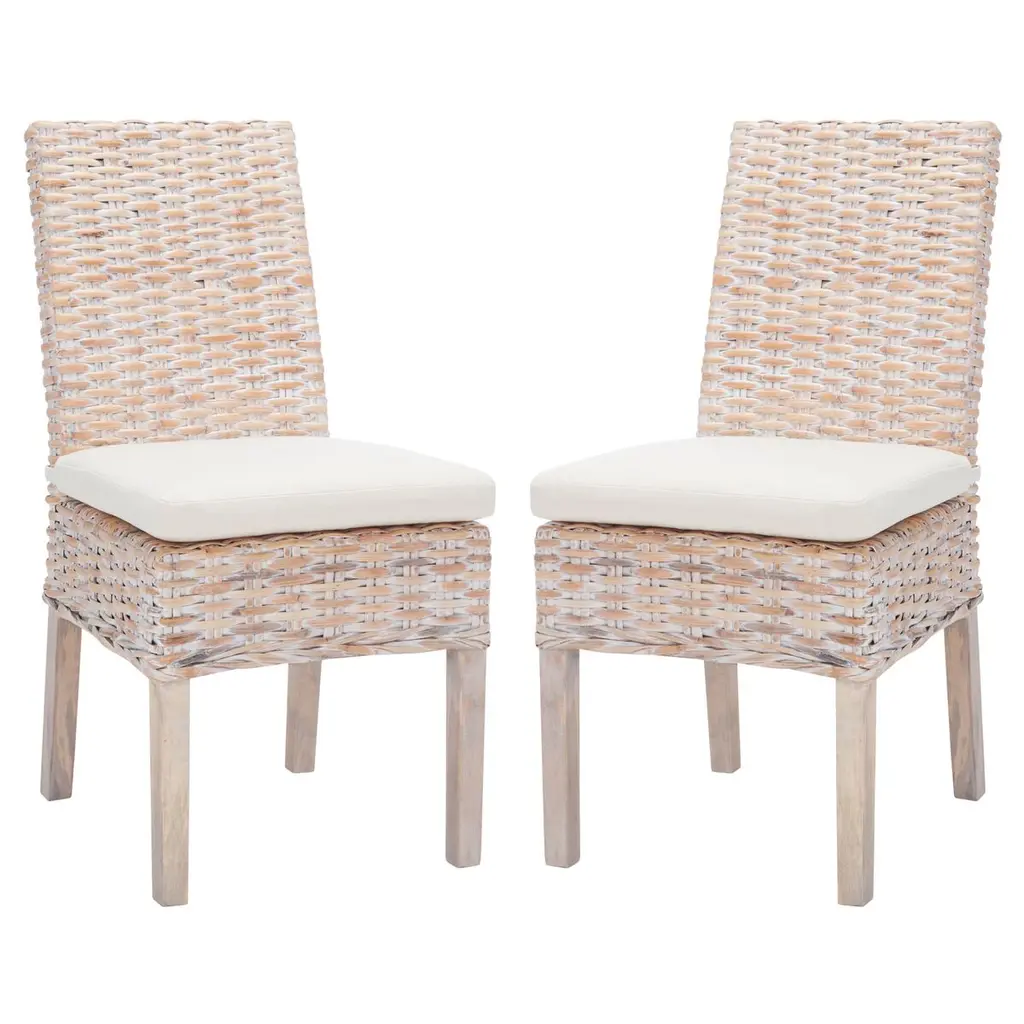 18''h Wicker Dining Chair In Whitewash - A Pair