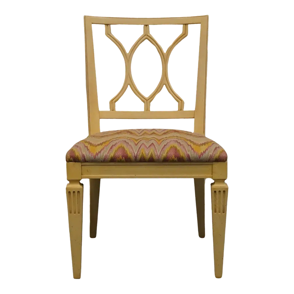 From our Hand-Painted Furniture Collection, we are pleased to introduce you to our Faenza Chair with upholstered seat.Sometimes it's the negative space that makes the biggest impact. Our Faenza Chair is one such case, with its curved diamond shapes and scalloped edges, echoing the chinoiserie style, typical expression of the XVIII C. Venetian fashion. This flawless chair perfectly blends aesthetic and expert craftsmanship. Whether around a dining table or as the perfect accent desk chair, this unique armchair will add visual interest in any interiors. Be informed that it is also available in its armchair and cane seat versions. Colors and decors can be customised according to your needs. Each piece from our Collections is entirely hand-painted on every side of the Furniture by using the very best 18th Century Craftsmanship Venetian Techniques, passed down through the generations of artists from our land.
