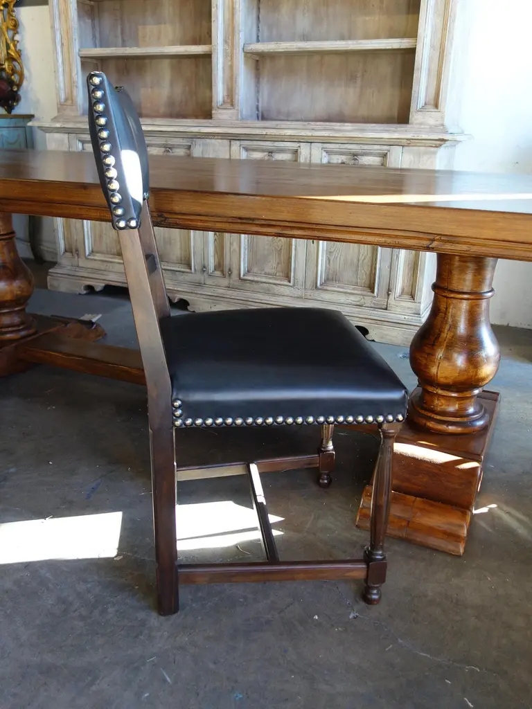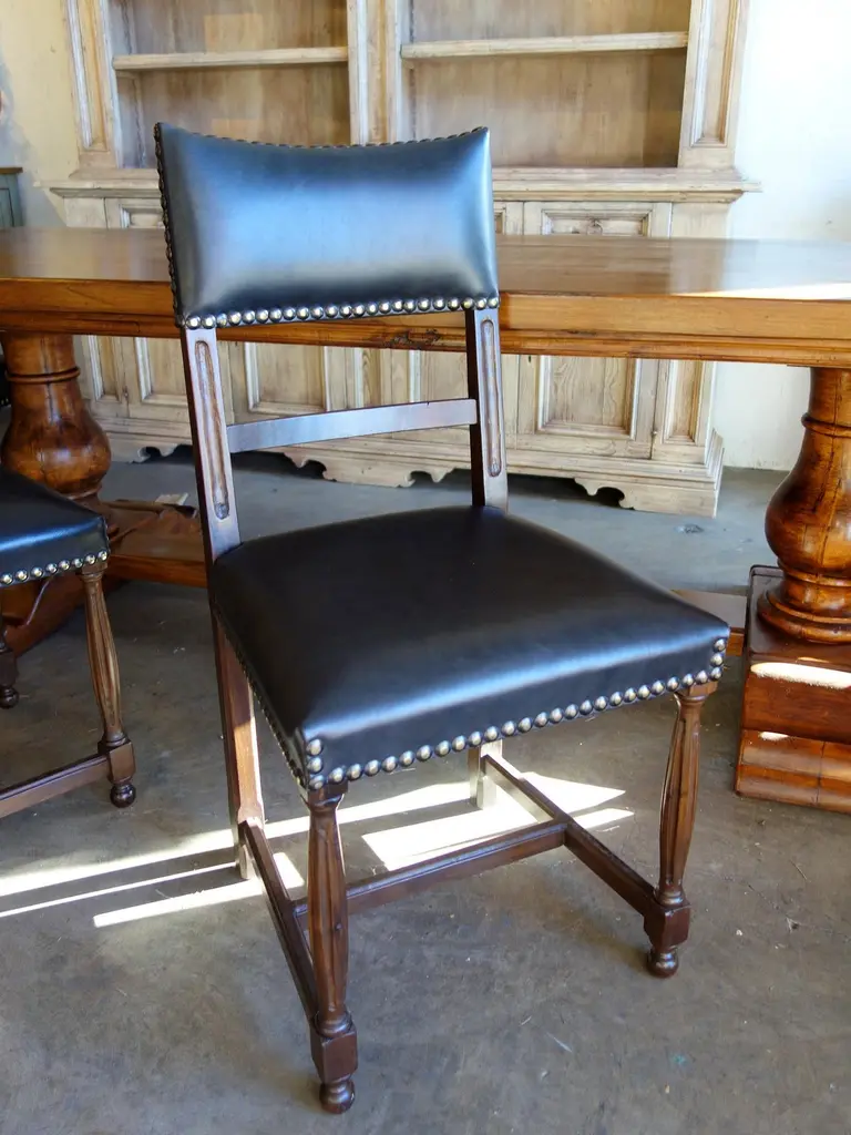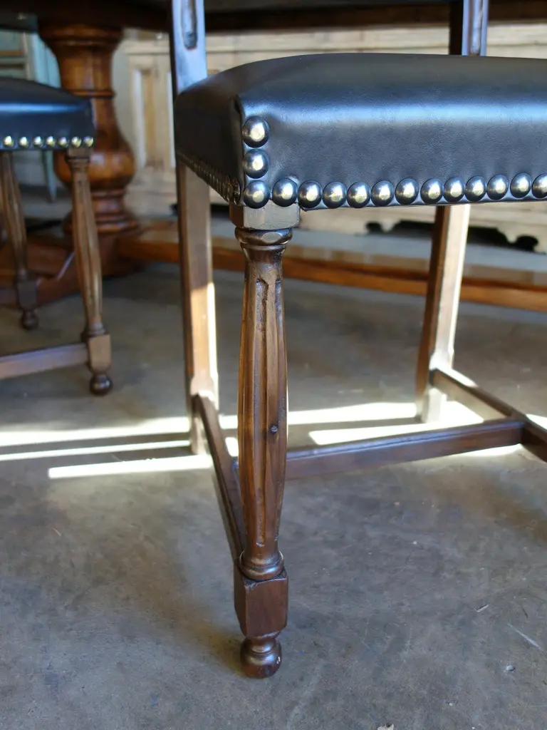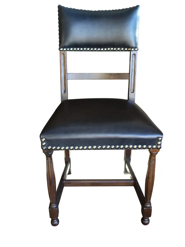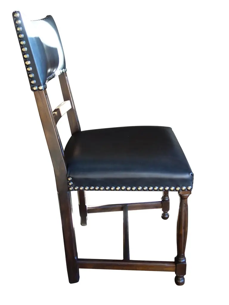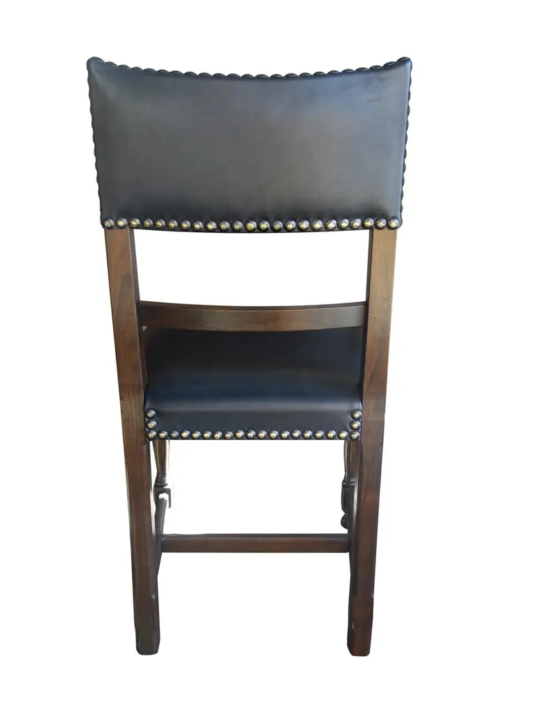 BELLA side chair - our exclusive 18th Century style antique reproduction side chair - handcrafted of solid Italian walnut with beautifully carved front legs and premium antique style leather. Rich shellac finish and matching espresso leather color. Burnished brass tacks. Handmade to order by our Master Craftsmen in Italy.Measures as shown: 18.5”W x 20.5”D x 38.5”H (seat height 19.5”H, seat depth 18”D, back width 17”W)Summer Sale - to order in size and details as shown $1,760. Each for quantity or 6 or more, with finish options. Custom size add $150 per side chair. Carved leg options by quote. Also available with leather and fabric options, a fully upholstered back version, arm chair version, bar & counter & bench - please contact us for a quote to fit your personal requirements.Bellini’s Old World Collection styles are adapted from Renaissance designs from the 15th to 19th centuries. For over 40 years, our craftsmen have been recovering & finishing old Italian hardwoods. Their lives have been immersed in the craft of antique furniture in traditional Mediterranean styles. Each piece is artfully handcrafted with aged Italian solid hardwoods and fine-tooled hardware, built to your custom needs by quote in size, configuration, color & patina.