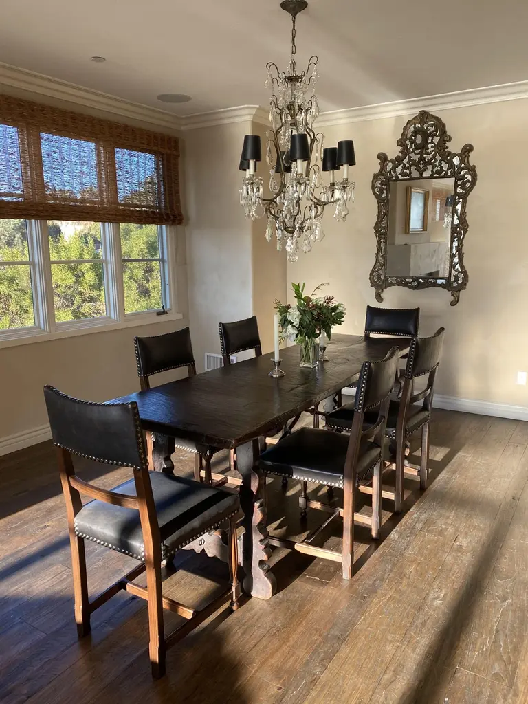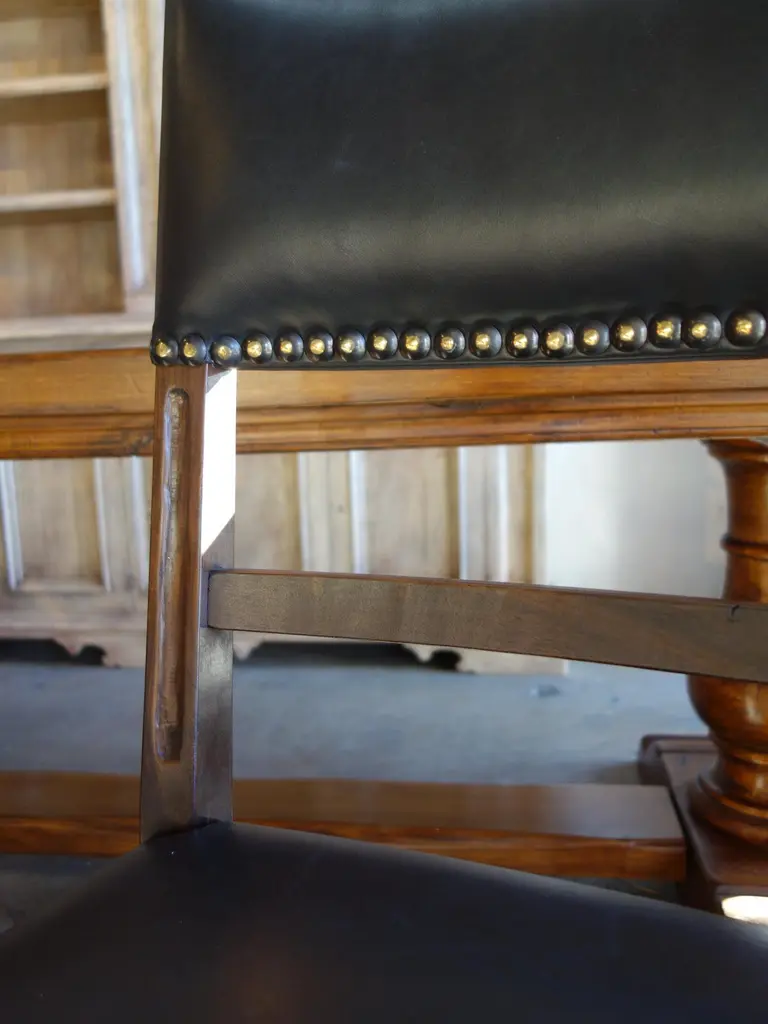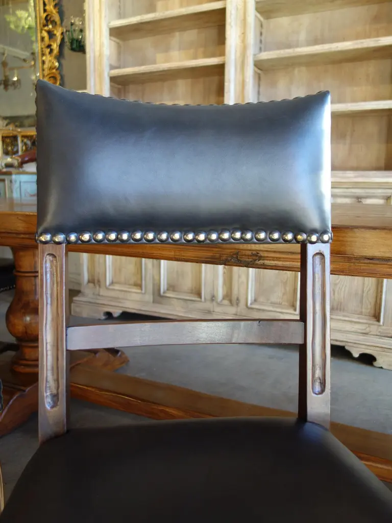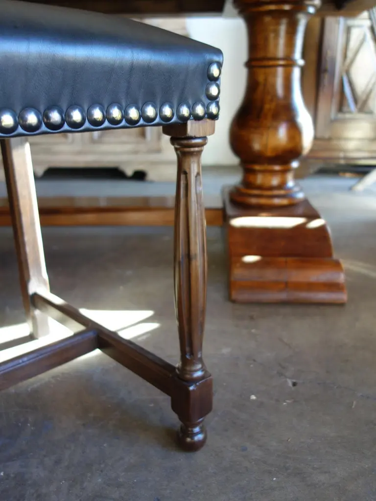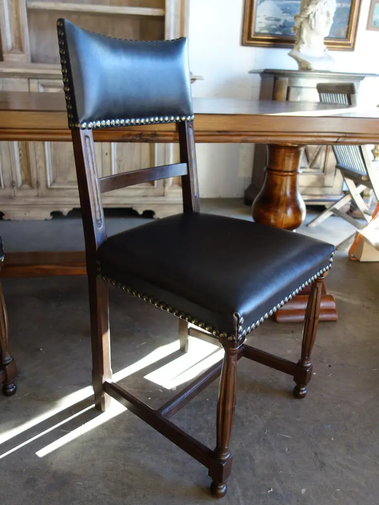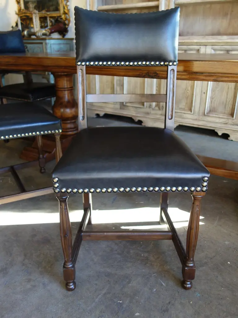 BELLA side chair - our exclusive 18th Century style antique reproduction side chair - handcrafted of solid Italian walnut with beautifully carved front legs and premium antique style leather. Rich shellac finish and matching espresso leather color. Burnished brass tacks. Handmade to order by our Master Craftsmen in Italy.Measures as shown: 18.5”W x 20.5”D x 38.5”H (seat height 19.5”H, seat depth 18”D, back width 17”W)Summer Sale - to order in size and details as shown $1,760. Each for quantity or 6 or more, with finish options. Custom size add $150 per side chair. Carved leg options by quote. Also available with leather and fabric options, a fully upholstered back version, arm chair version, bar & counter & bench - please contact us for a quote to fit your personal requirements.Bellini’s Old World Collection styles are adapted from Renaissance designs from the 15th to 19th centuries. For over 40 years, our craftsmen have been recovering & finishing old Italian hardwoods. Their lives have been immersed in the craft of antique furniture in traditional Mediterranean styles. Each piece is artfully handcrafted with aged Italian solid hardwoods and fine-tooled hardware, built to your custom needs by quote in size, configuration, color & patina.