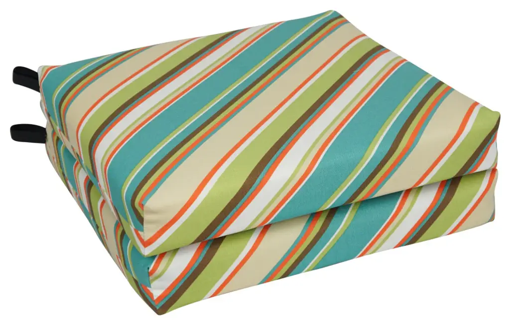 Add a splash of color and style to your home furnishings with these chair cushions. These cushions feature a classic tufted cushion design and are available in a wide variety of striking patterns of UV and weather-resistant spun polyester outdoor fabric.
