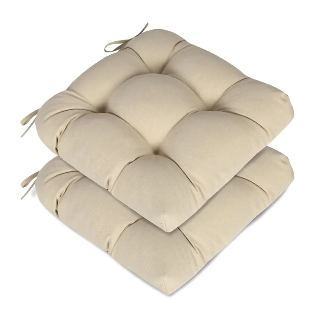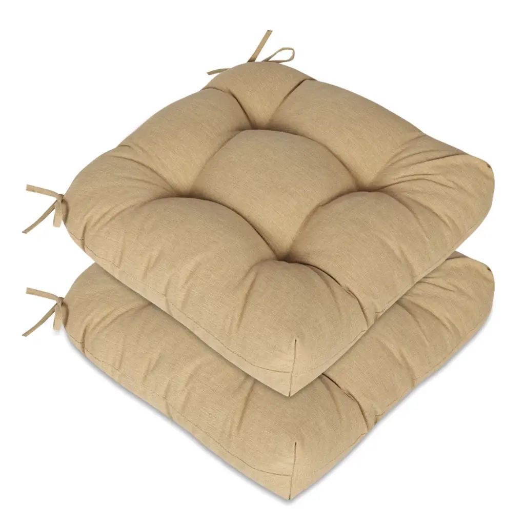 19" Squared Spun Polyester Tufted Dining Chair Cushion, Wheat