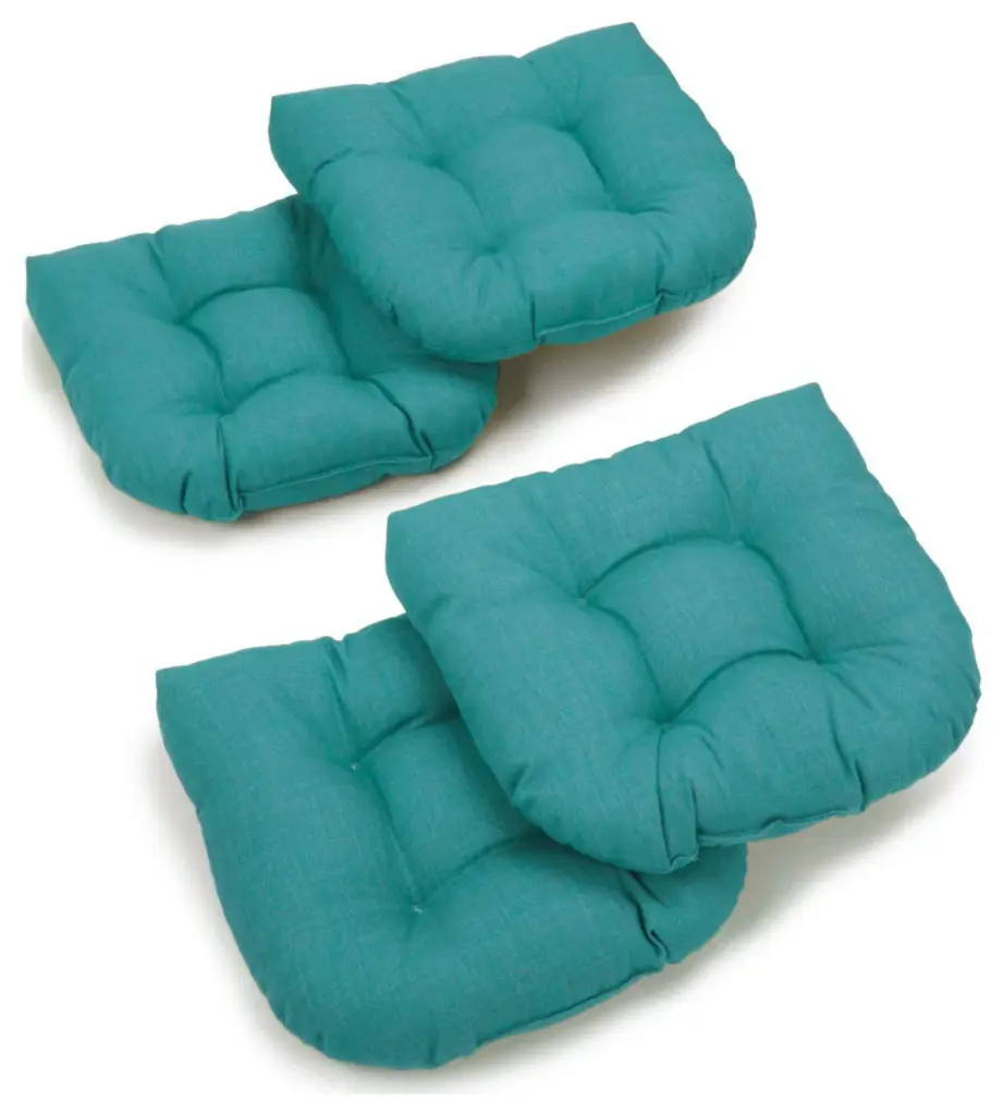 19" Squared Tufted Dining Chair Cushion, Set Of 2, Aqua Blue