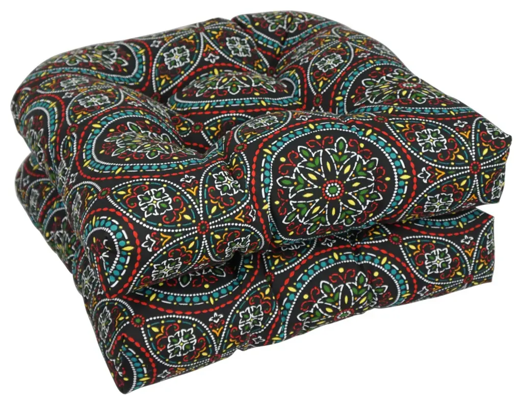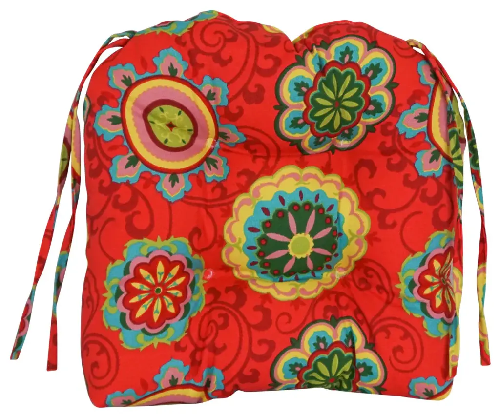 Add a splash of color and style to your home furnishings with these chair cushions. These cushions feature a classic tufted cushion design and are available in a wide variety of striking patterns of UV and weather-resistant spun polyester outdoor fabric.
