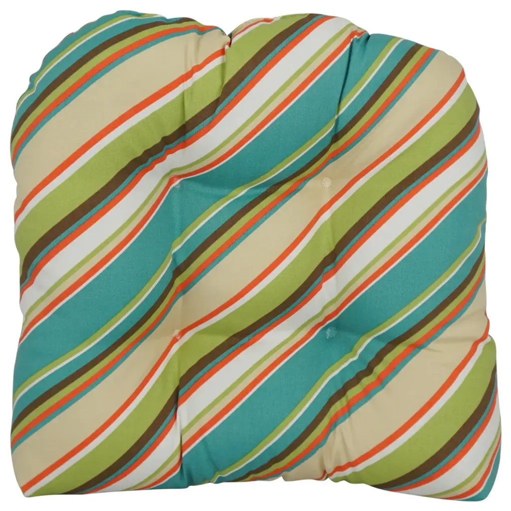 Add a splash of color and style to your home furnishings with these chair cushions. These cushions feature a classic tufted cushion design and are available in a wide variety of striking patterns of UV and weather-resistant spun polyester outdoor fabric.
