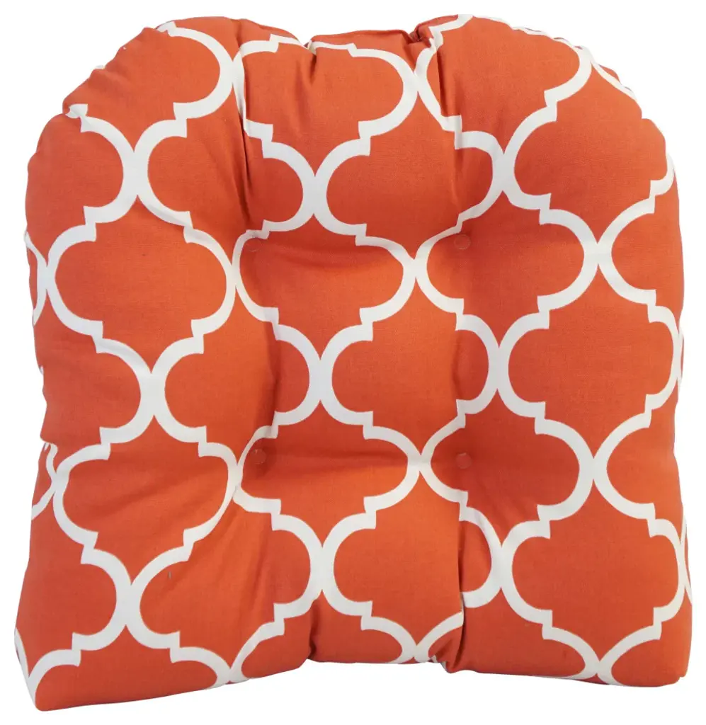 Add a splash of color and style to your home furnishings with these chair cushions. These cushions feature a classic tufted cushion design and are available in a wide variety of striking patterns of UV and weather-resistant spun polyester outdoor fabric.