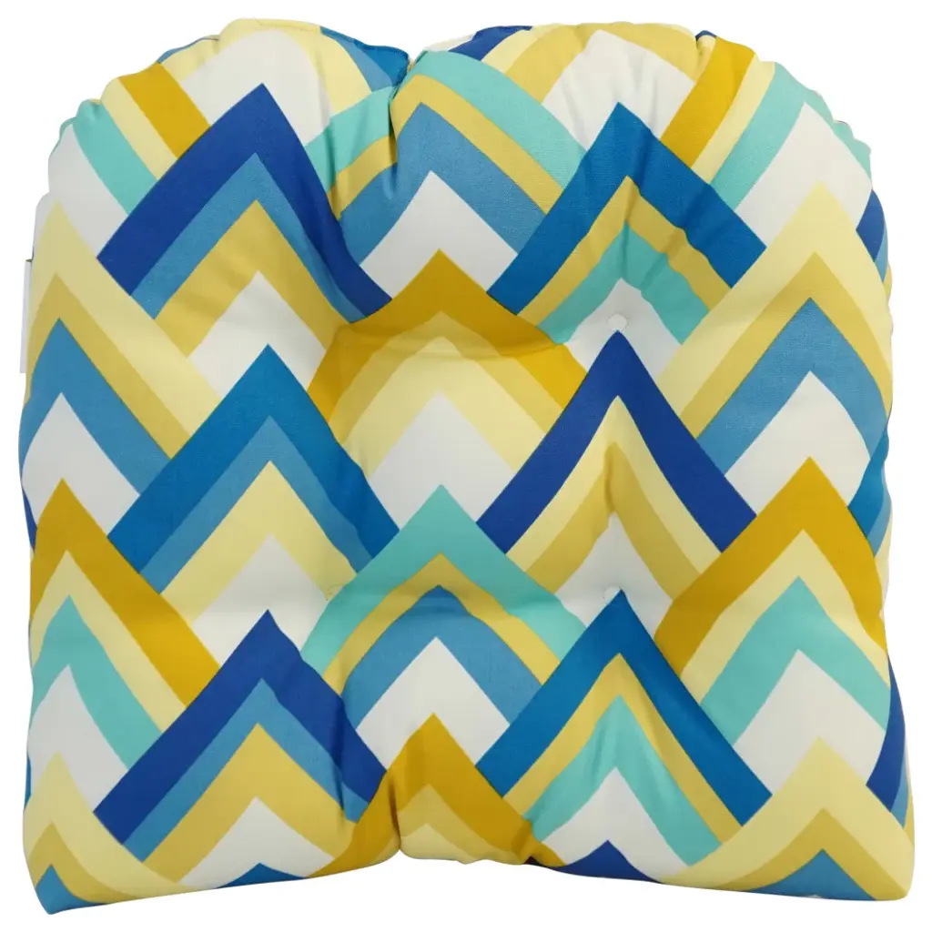 Add a splash of color and style to your home furnishings with these chair cushions. These cushions feature a classic tufted cushion design and are available in a wide variety of striking patterns of UV and weather-resistant spun polyester outdoor fabric.