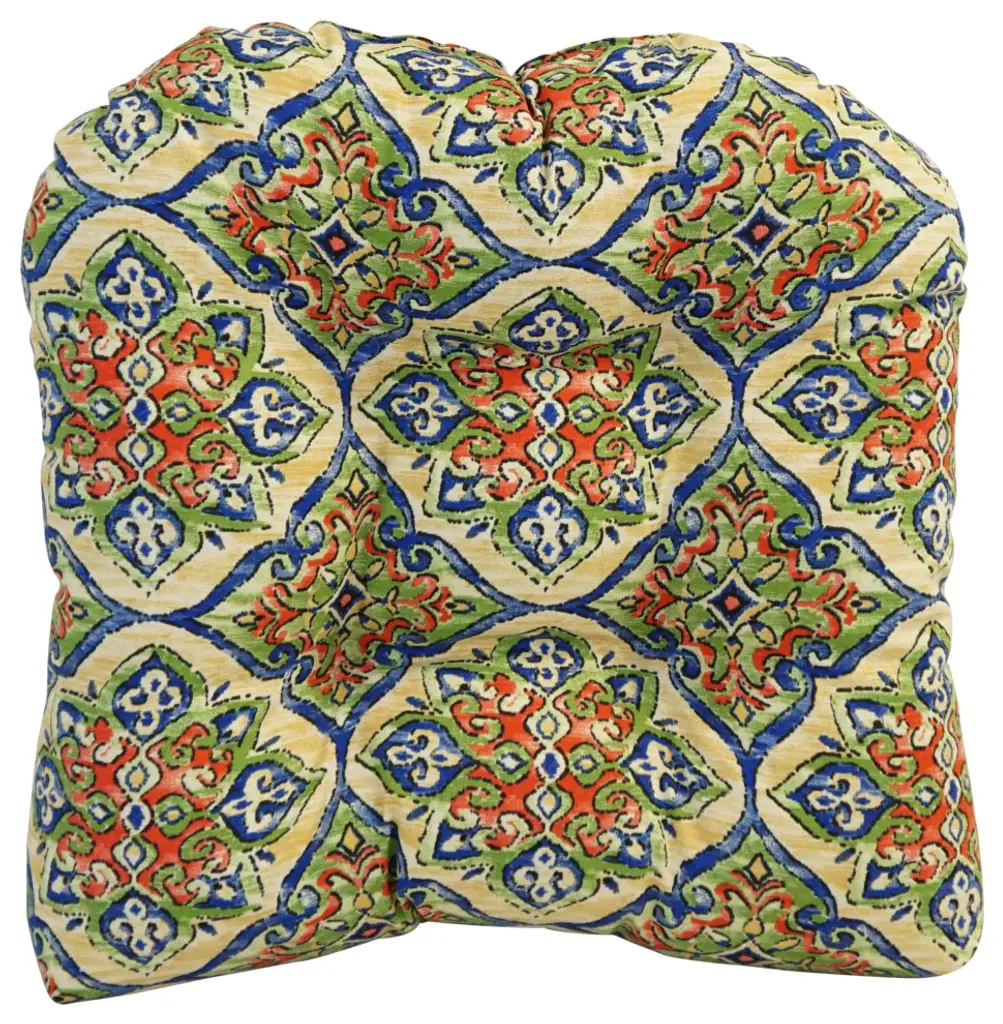 Add a splash of color and style to your home furnishings with these chair cushions. These cushions feature a classic tufted cushion design and are available in a wide variety of striking patterns of UV and weather-resistant spun polyester outdoor fabric.