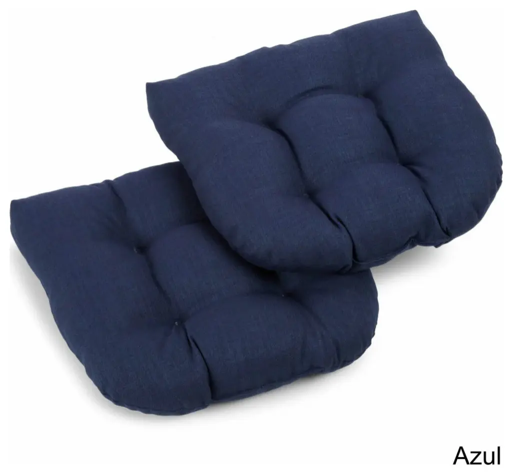 19" U-Shaped Outdoor Tufted Dining Chair Cushion, Set Of 2, Azul