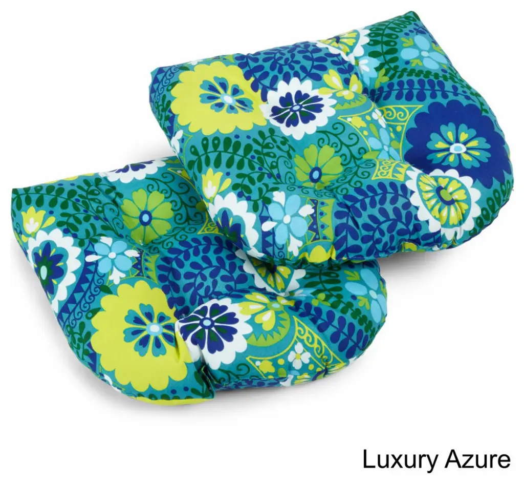 19" U-Shaped Outdoor Tufted Dining Chair Cushion, Set Of 2, Luxury Azure