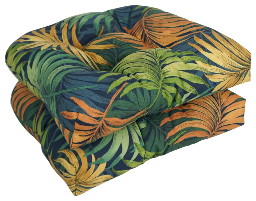 Add a splash of color and style to your home furnishings with these chair cushions. These cushions feature a classic tufted cushion design and are available in a wide variety of striking patterns of UV and weather-resistant spun polyester outdoor fabric.