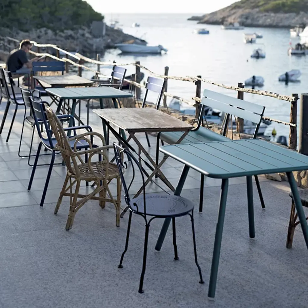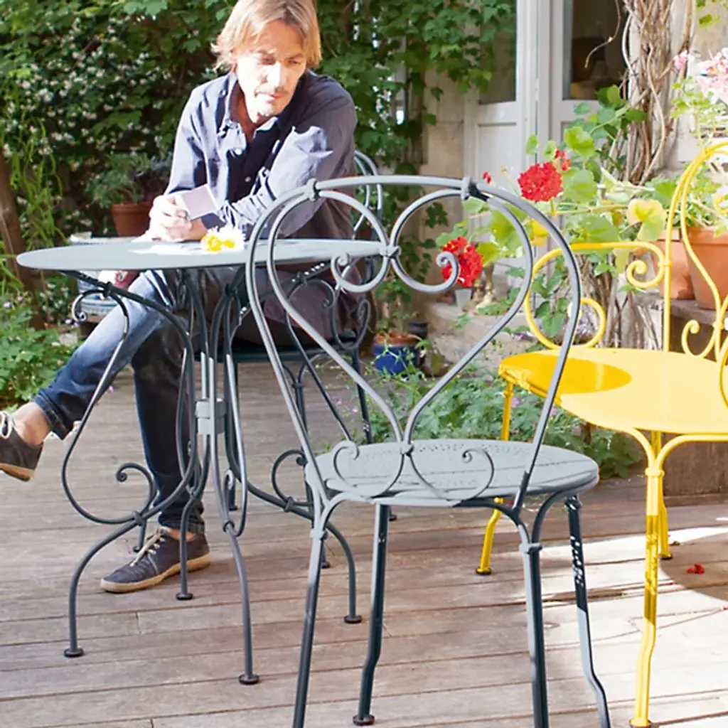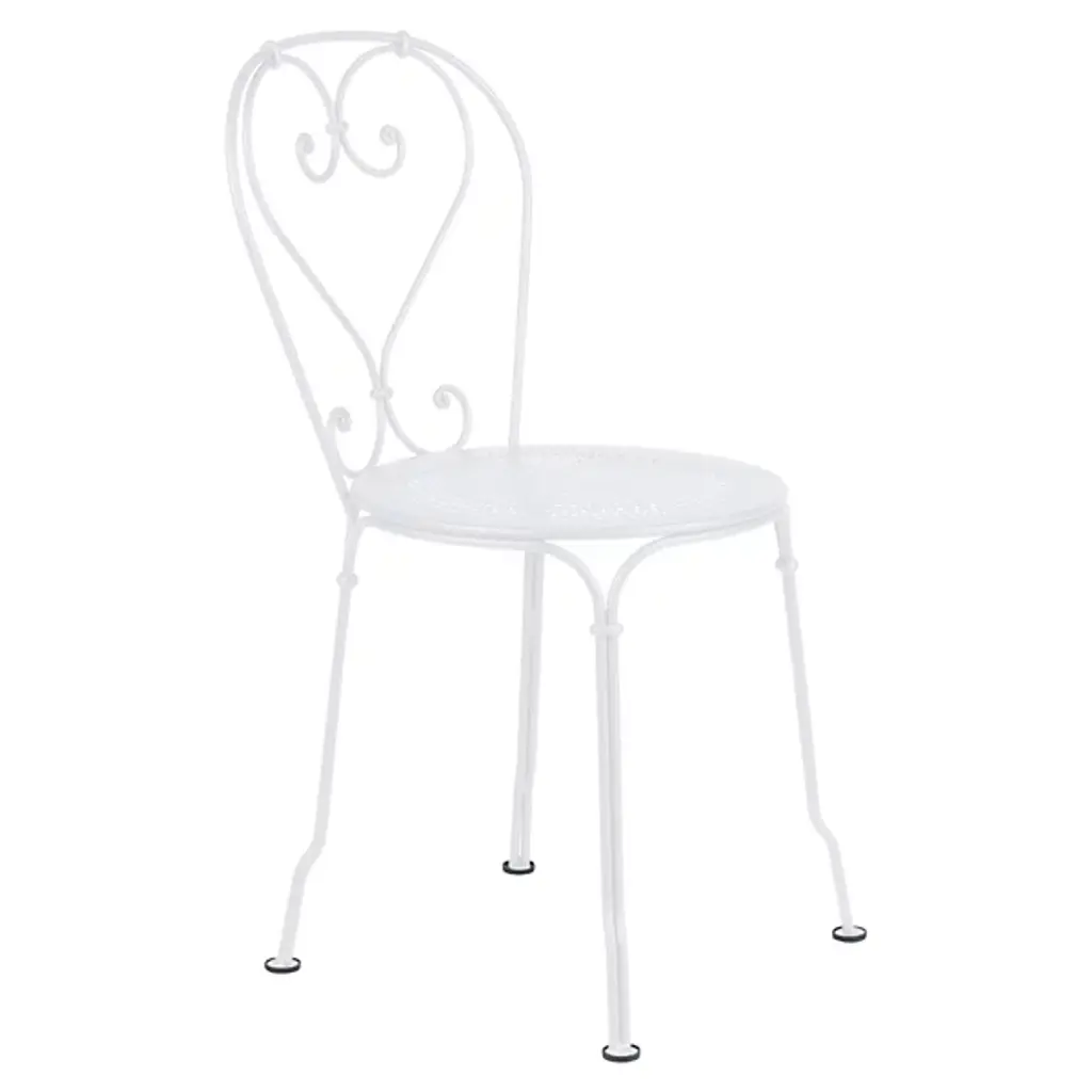 A side chair you're destined to love. Each of the Fermob 1900 Chair, Set of 2 is an elegant, classically-styled steel chair with a curvy heart motif for the back and a perforated round of sheet steel for the seat. The result at once delicate-looking, lightweight and exceptionally strong. When not in use, the chair is stackable up to 10 high.