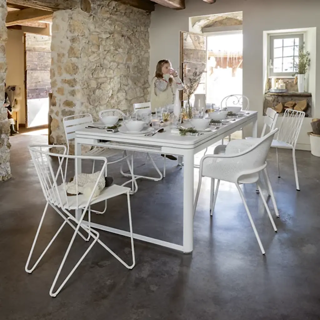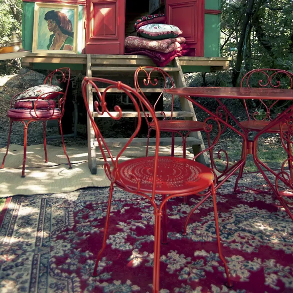 A side chair you're destined to love. Each of the Fermob 1900 Chair, Set of 2 is an elegant, classically-styled steel chair with a curvy heart motif for the back and a perforated round of sheet steel for the seat. The result at once delicate-looking, lightweight and exceptionally strong. When not in use, the chair is stackable up to 10 high.