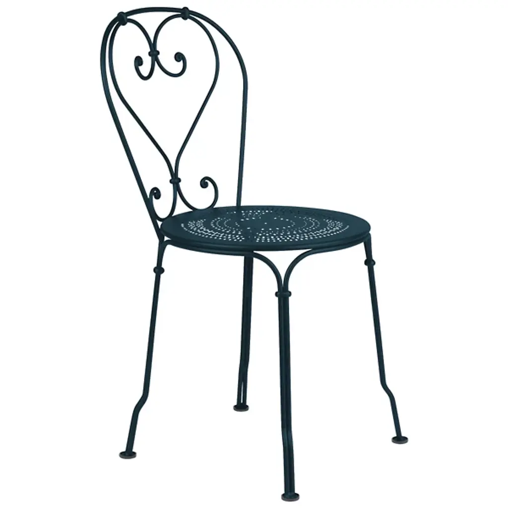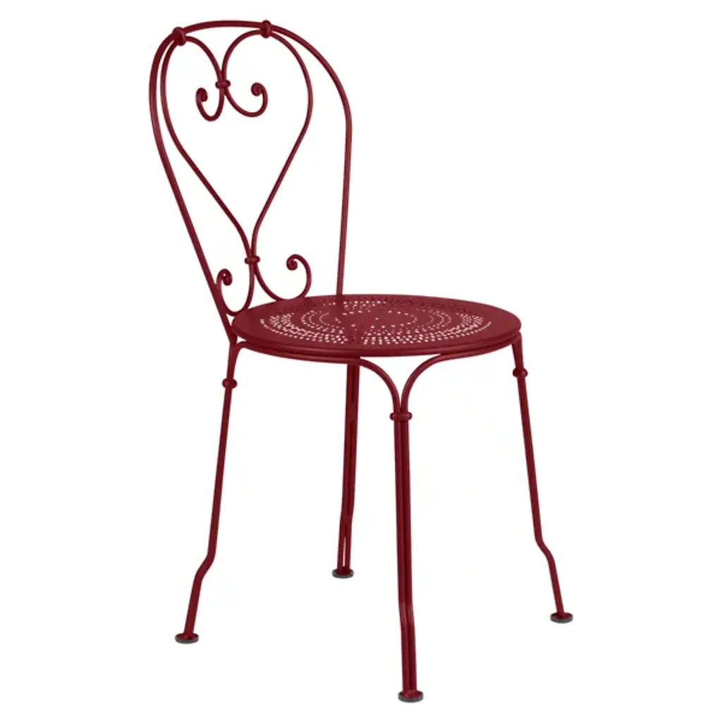 A side chair you're destined to love. Each of the Fermob 1900 Chair, Set of 2 is an elegant, classically-styled steel chair with a curvy heart motif for the back and a perforated round of sheet steel for the seat. The result at once delicate-looking, lightweight and exceptionally strong. When not in use, the chair is stackable up to 10 high.