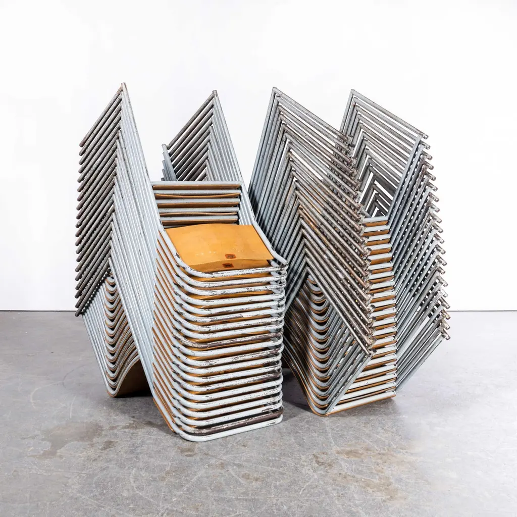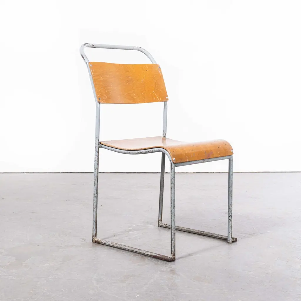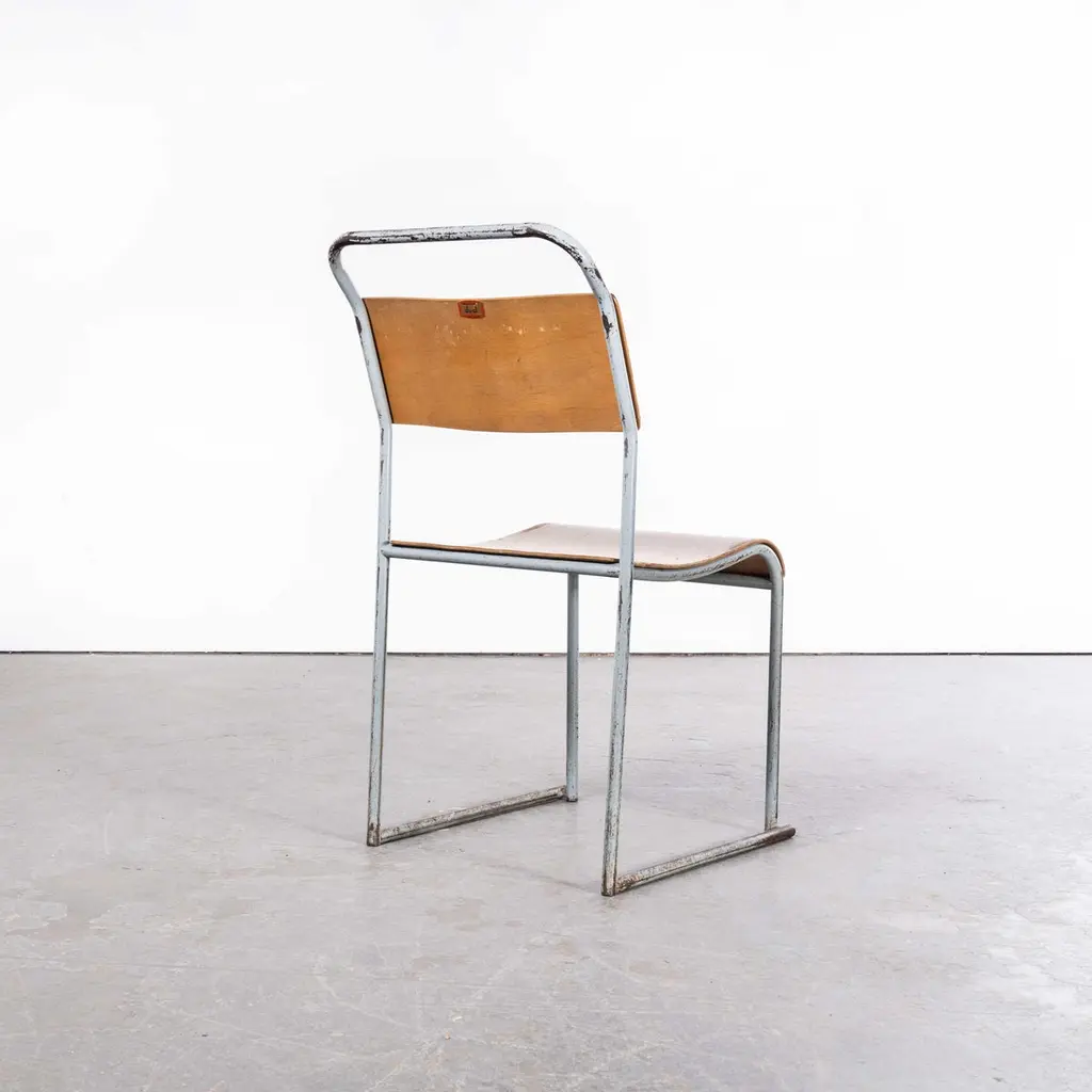 1950s Dual Tubular Metal Grey Dining Chairs – Various Quantities Available1950s Dual Tubular Metal Grey Dining Chairs – Various Quantities Available. One of the all time Classic British chairs inspired by the contemporary designs of Bauhaus. The most famous producer in England was PEL, but several other manufacturers produced the same design and Dual was one of the big ones. The chairs stack well and have their original birch seats and backs in good condition. We service all our chairs before they leave our workshop and we deliver chairs of excellent quality. Seat height: 46cmWORKSHOP REPORTOur workshop team inspect every product and carry out any needed repairs to ensure that everything leaves us serviced and maintained ready for many more years of life. All of our vintage products show the rich beauty and history of their life with the knocks and bumps of many years of use and we try to minimise restoration to keep every piece as original as possible.Date: 1950sMaker: Industrial Production - EnglandDimensions: L 45 x W 86 x H 45 cm.