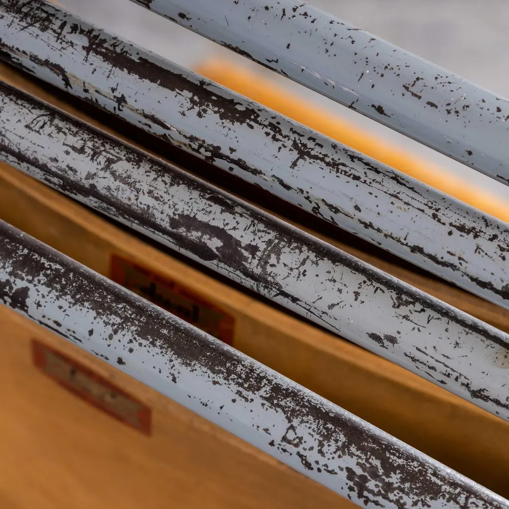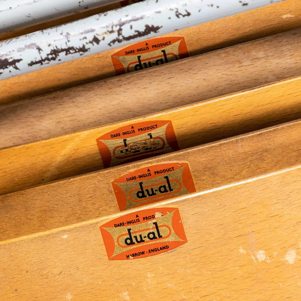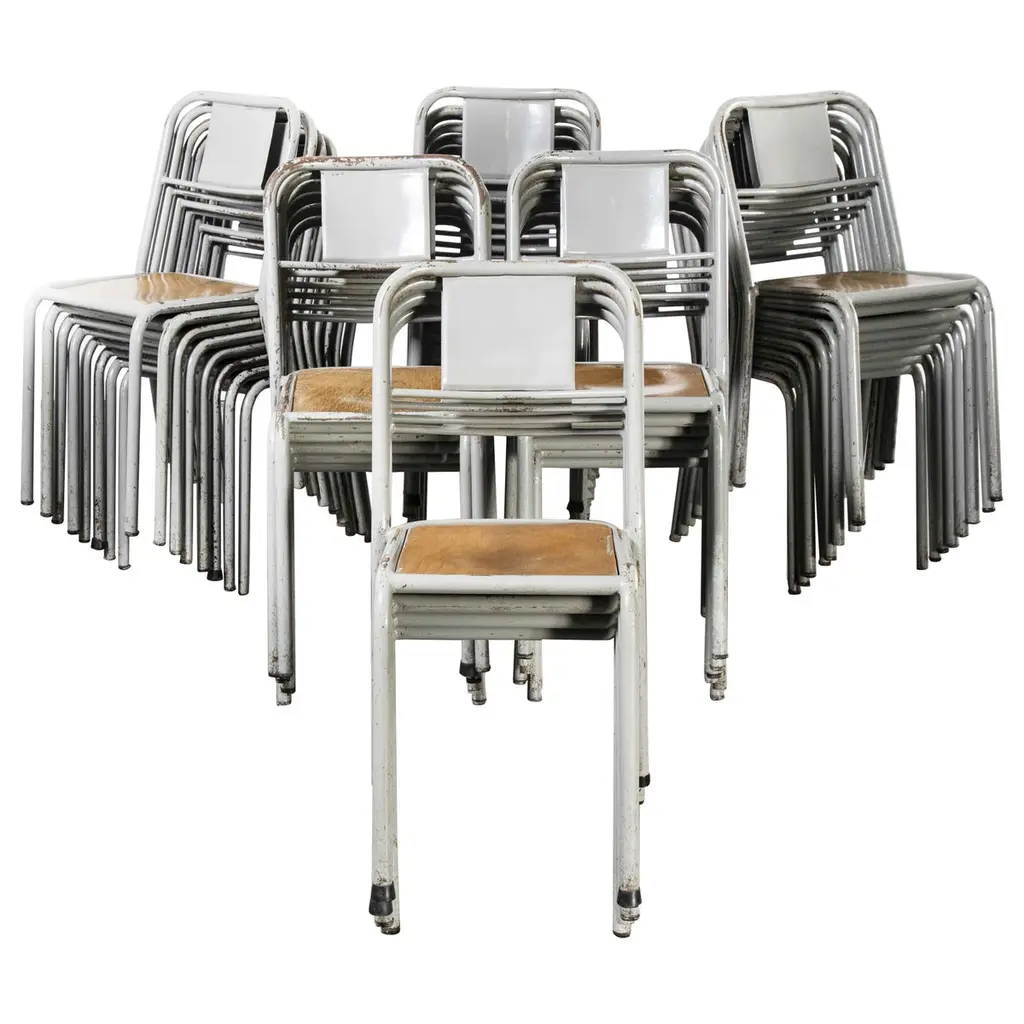 1950s Dual Tubular Metal Grey Dining Chairs – Various Quantities Available1950s Dual Tubular Metal Grey Dining Chairs – Various Quantities Available. One of the all time Classic British chairs inspired by the contemporary designs of Bauhaus. The most famous producer in England was PEL, but several other manufacturers produced the same design and Dual was one of the big ones. The chairs stack well and have their original birch seats and backs in good condition. We service all our chairs before they leave our workshop and we deliver chairs of excellent quality. Seat height: 46cmWORKSHOP REPORTOur workshop team inspect every product and carry out any needed repairs to ensure that everything leaves us serviced and maintained ready for many more years of life. All of our vintage products show the rich beauty and history of their life with the knocks and bumps of many years of use and we try to minimise restoration to keep every piece as original as possible.Date: 1950sMaker: Industrial Production - EnglandDimensions: L 45 x W 86 x H 45 cm.