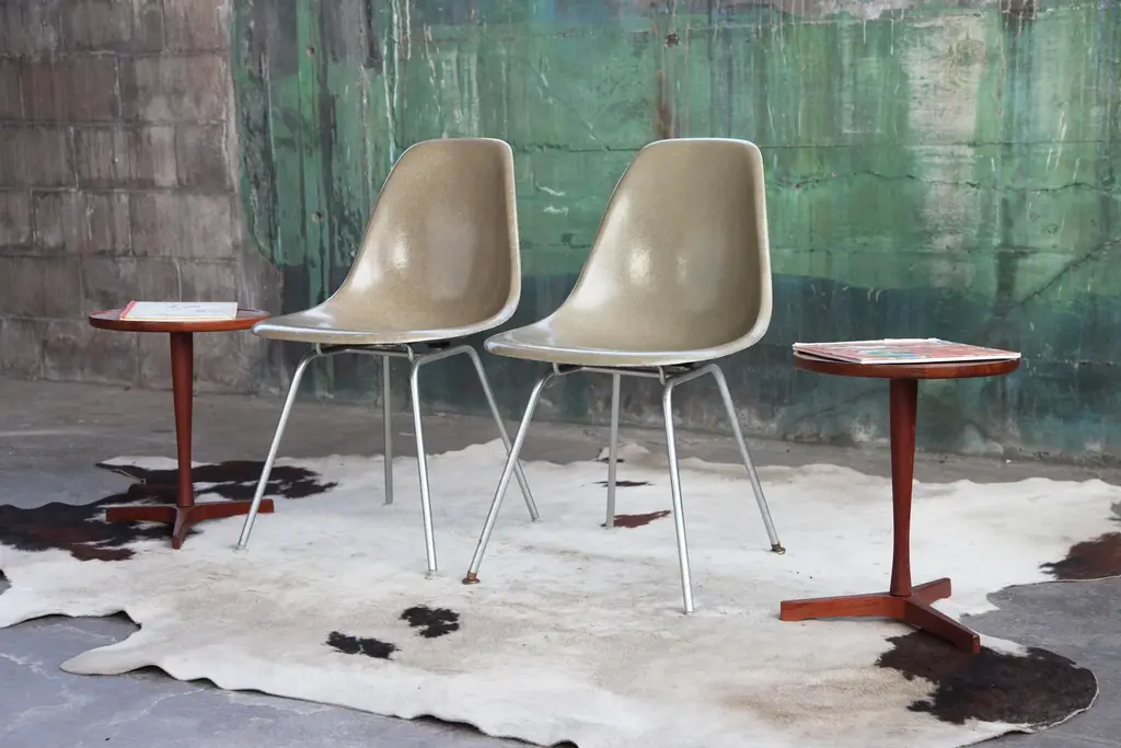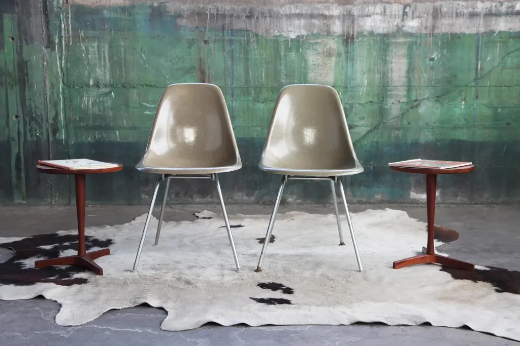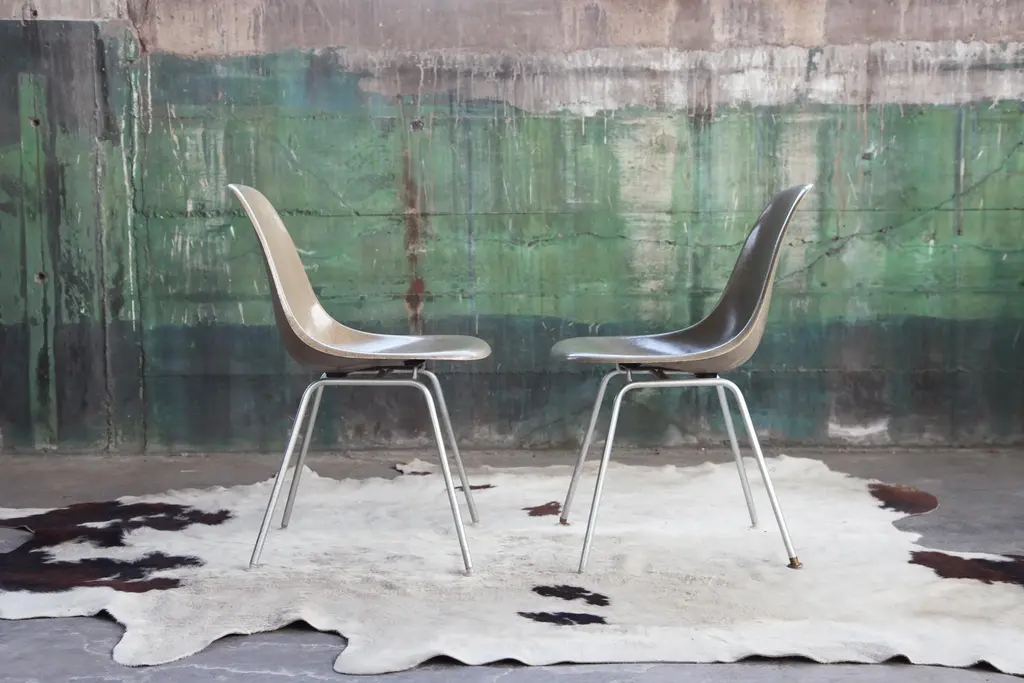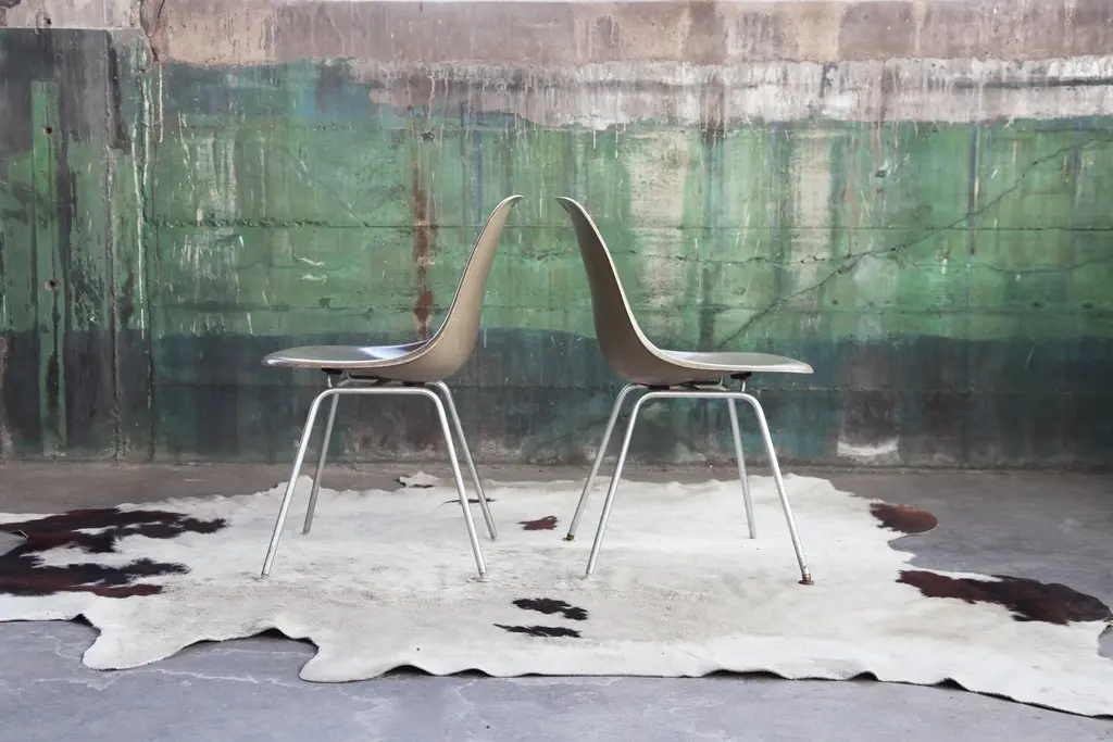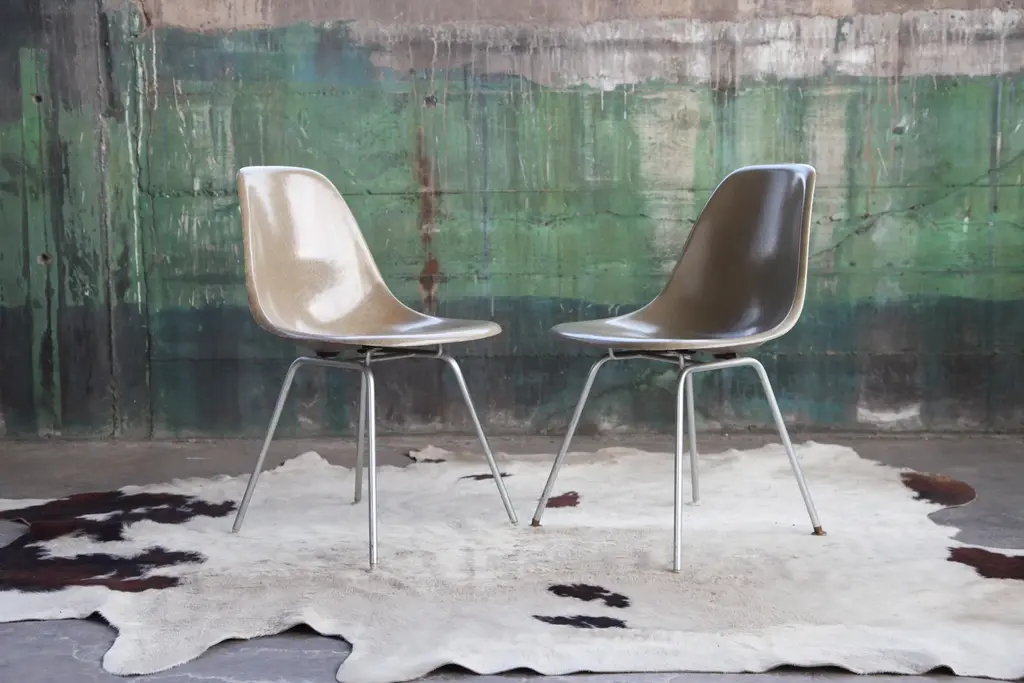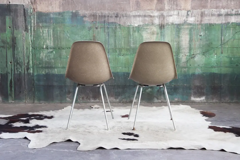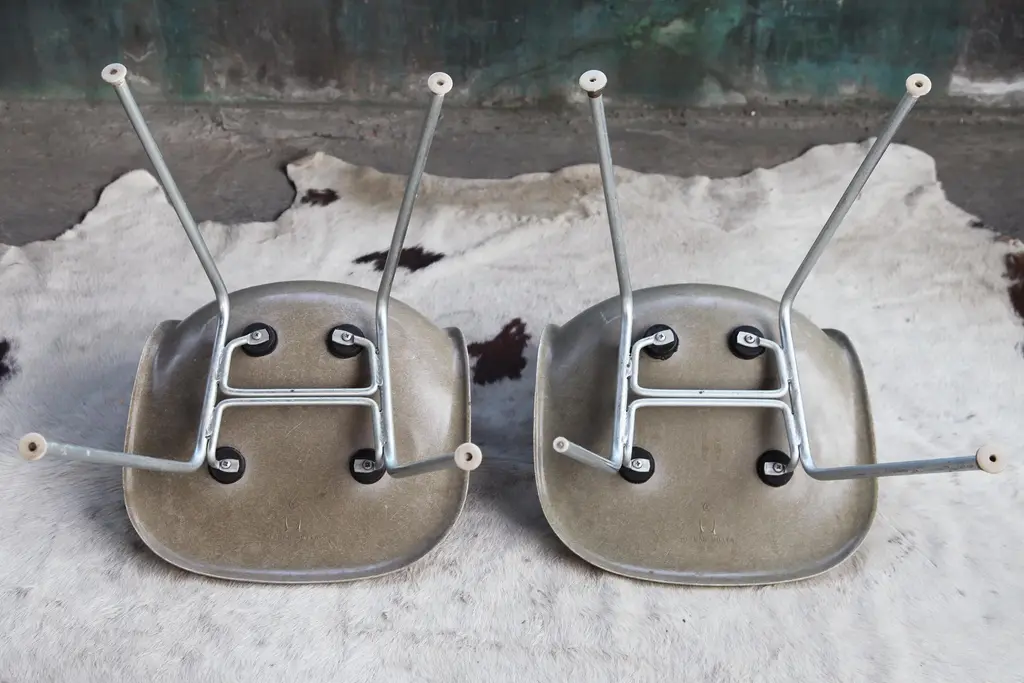 Very beautiful first edition 1950s Herman Miller side chairs in fiberglass ‘greige’ color (a combination of grey and beige) This beautiful and iconic neutral color is suited for any modern, postmodern or mid century modern color scheme for design today. As always, Very stylish and ICONIC in this "Greige" color as this color was one of three colors that were part of the first run of these chairs for their release in 1950. Dimensions 18.5ʺW × 21ʺD × 31ʺH Seat Height 18.5 in Shipping: We offer worldwide shipping. We package professionally, and ship via shipping companies. International Shipping details: Your shipping rate is listed here in the posting. We have teamed with the top international shipping companies to get you your item safely and speedily. We hire a professional packager to pad and box the item(s). We ship via our own shipping partners to work out all of the International shipping logistics and to get you the best possible shipping rates. You can expect your item to take 6-15 business days to arrive to you after dispatch. Your item will take 5-7 business days to process once your order has gone through. Import Duties, fees and VAT: This item(s) ships from Basel, Switzerland. Generally there are no import duties on used furniture. Often times the VAT is not charged. However if it is, the customer is responsible for import fees and VAT upon receipt of the item(s). The import VAT and fees will depend on the customer’s country and state. US VAT fees are calculated based on the city zip code and are around 5-9% of the cost of the item. We can assist in helping you determine what your VAT cost will be, if you would like to message us about it