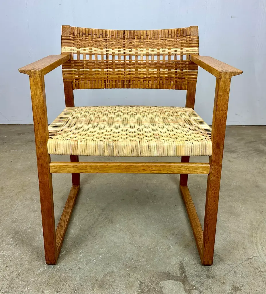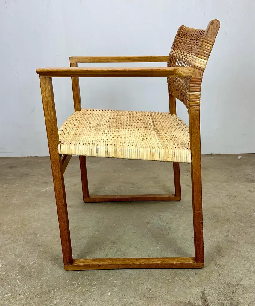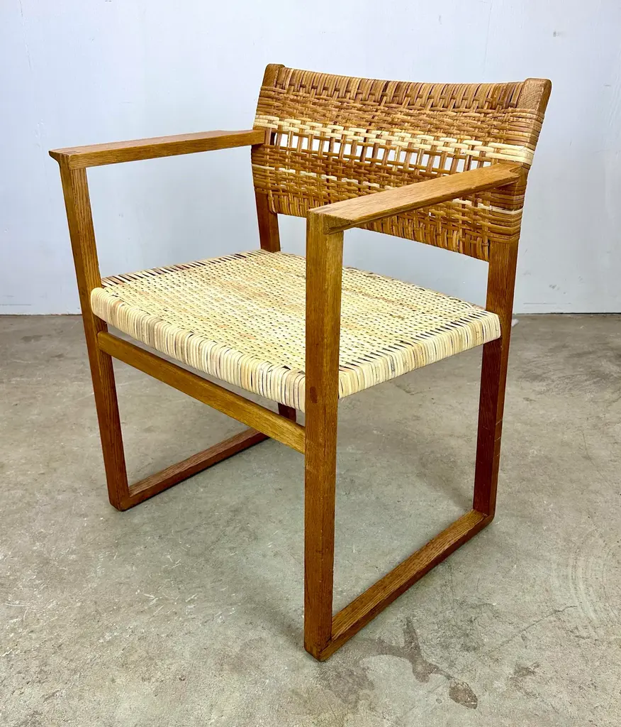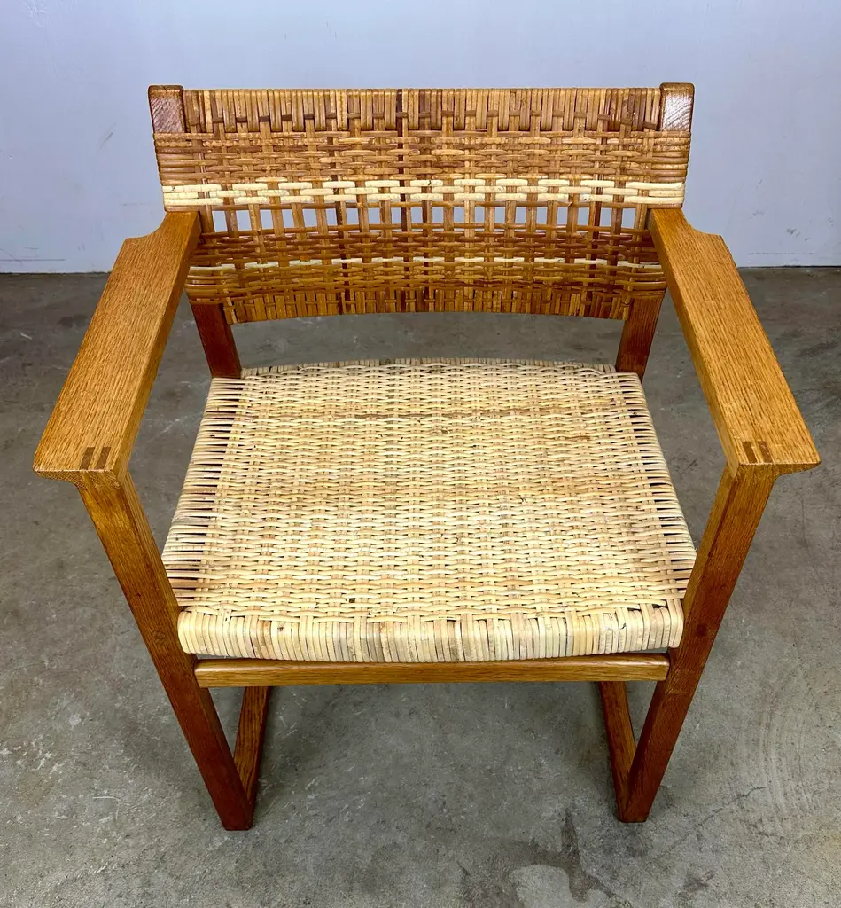 1960’s Borge Mogensen Bm 62 Oak And Cane/rattan Armchair By Fredericia