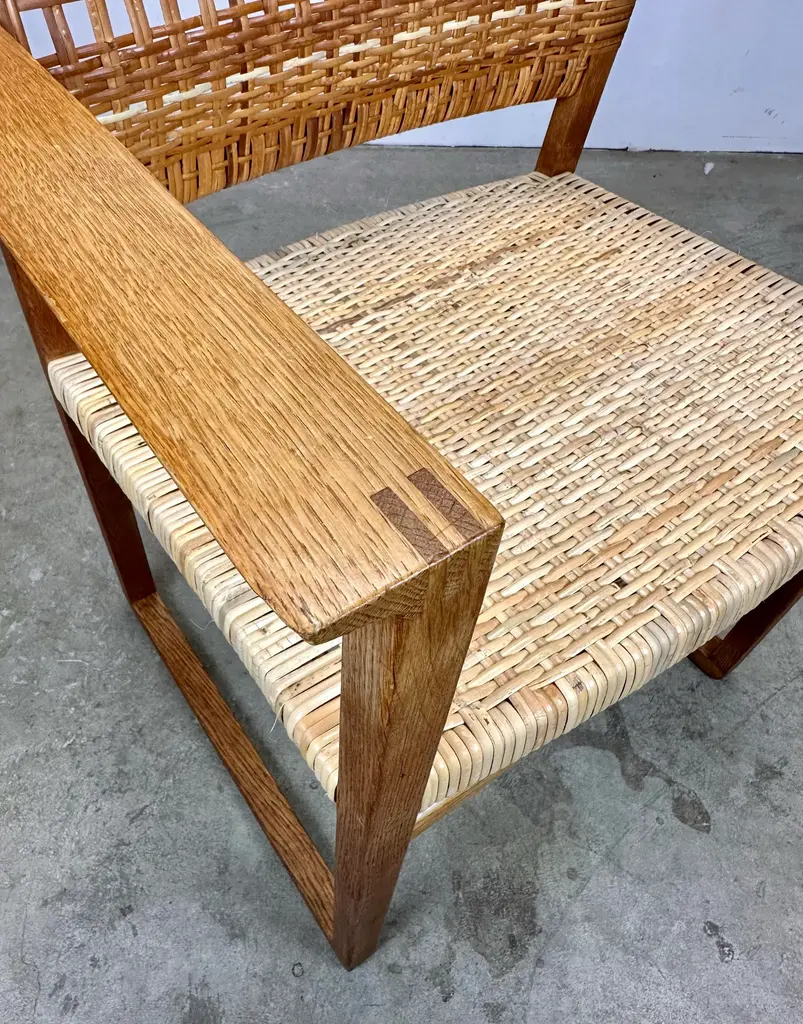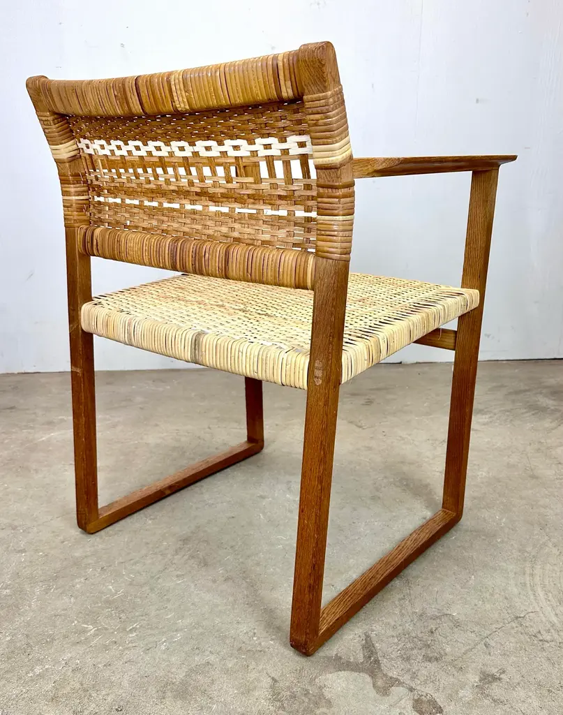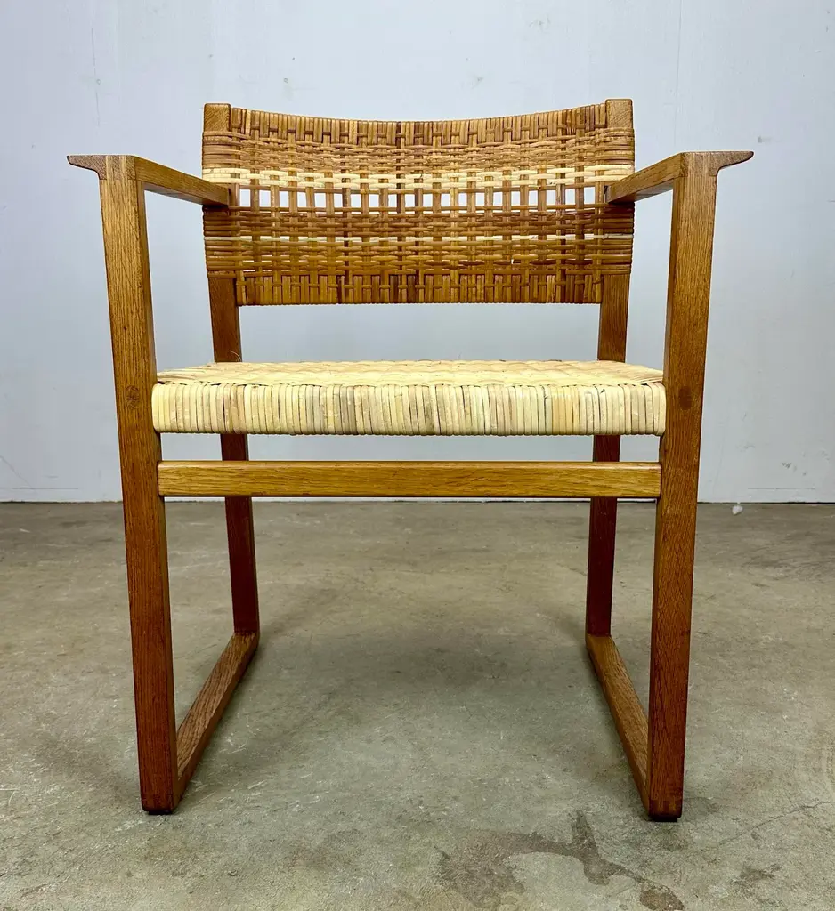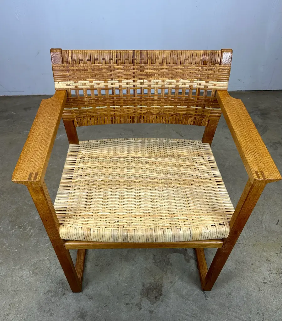 1960’s Borge Mogensen Bm 62 Oak And Cane/rattan Armchair By Fredericia