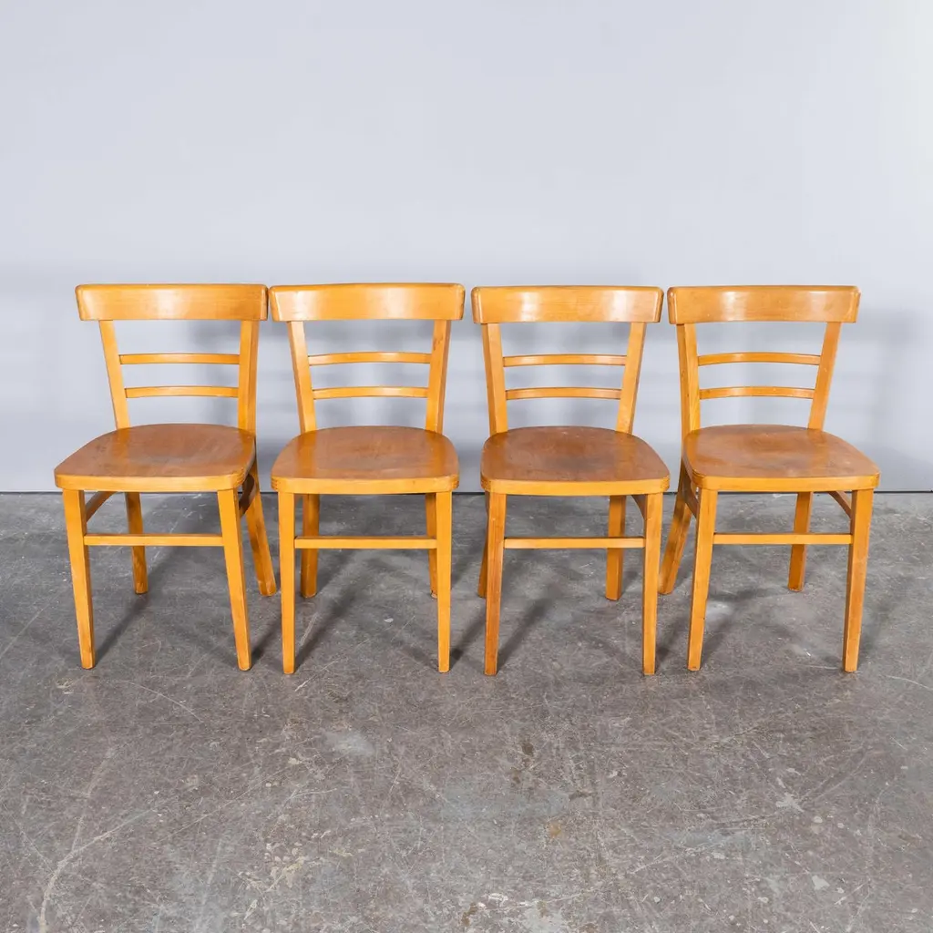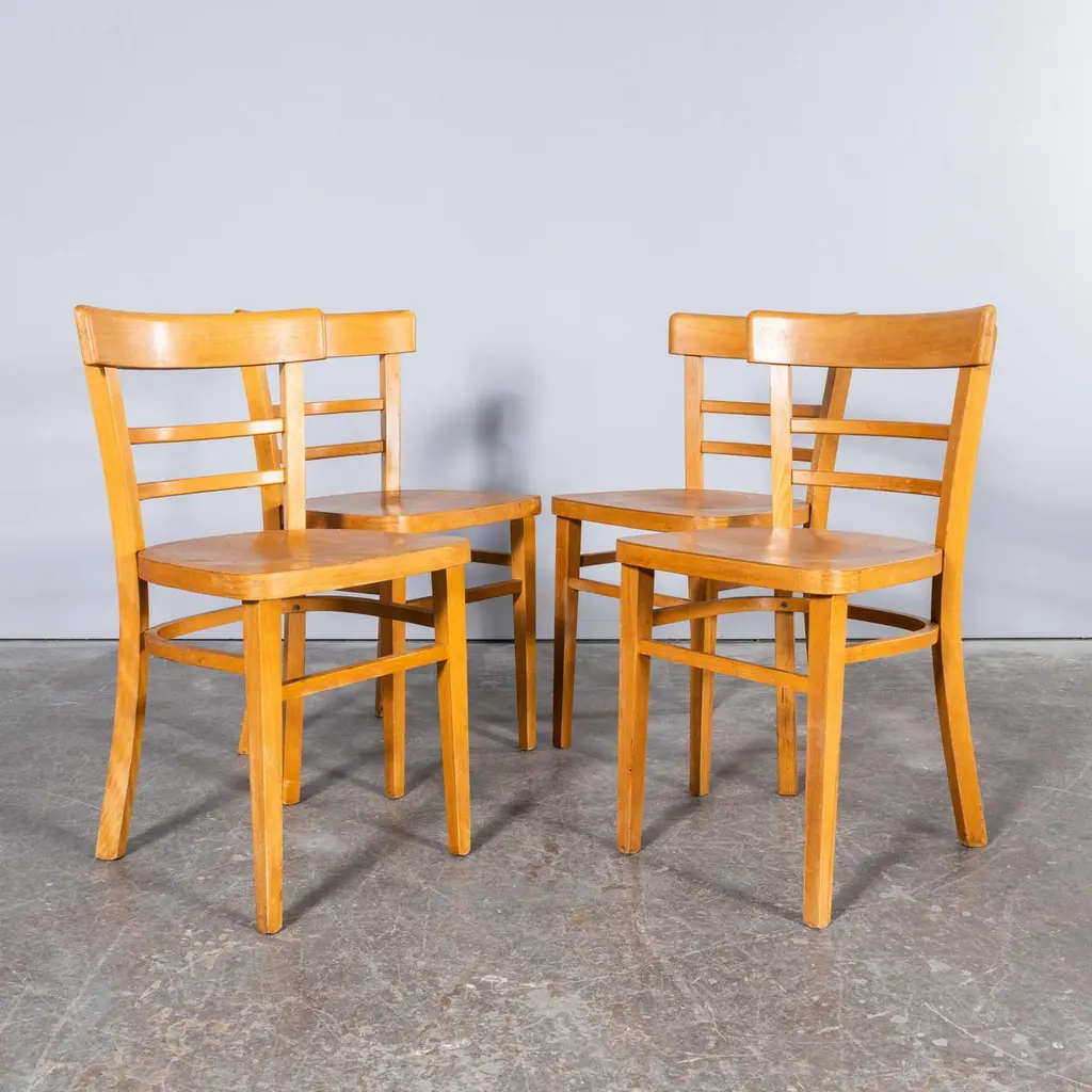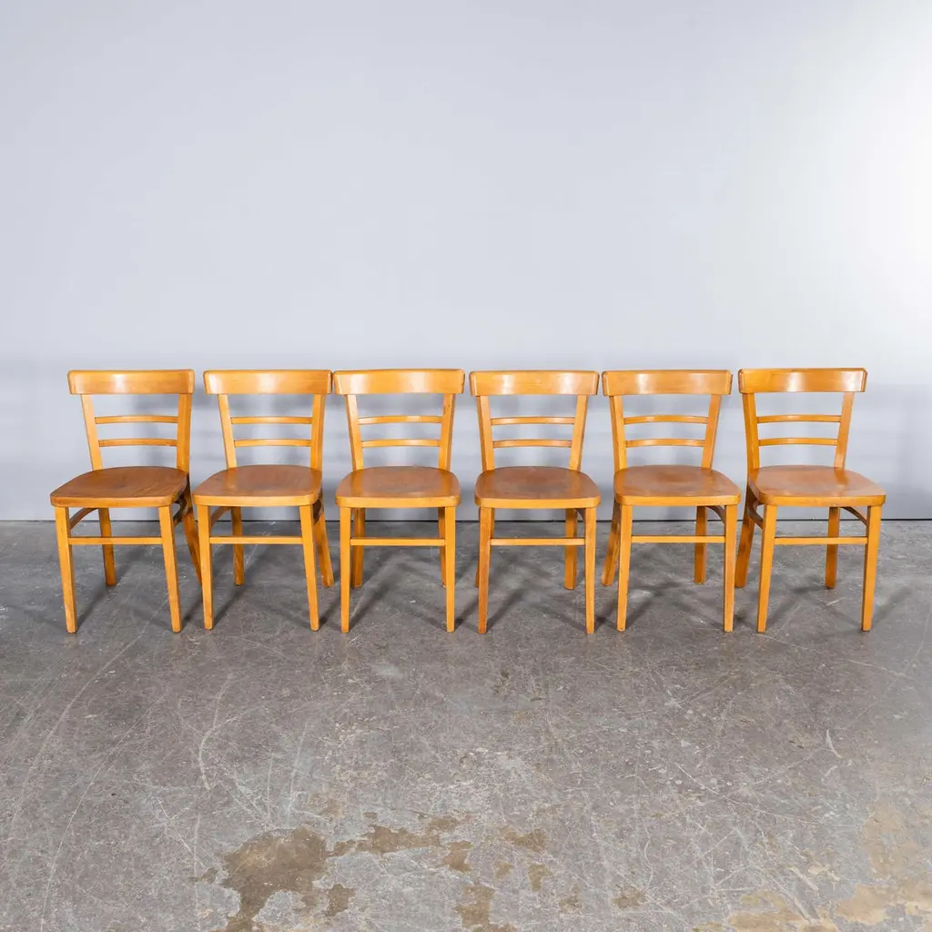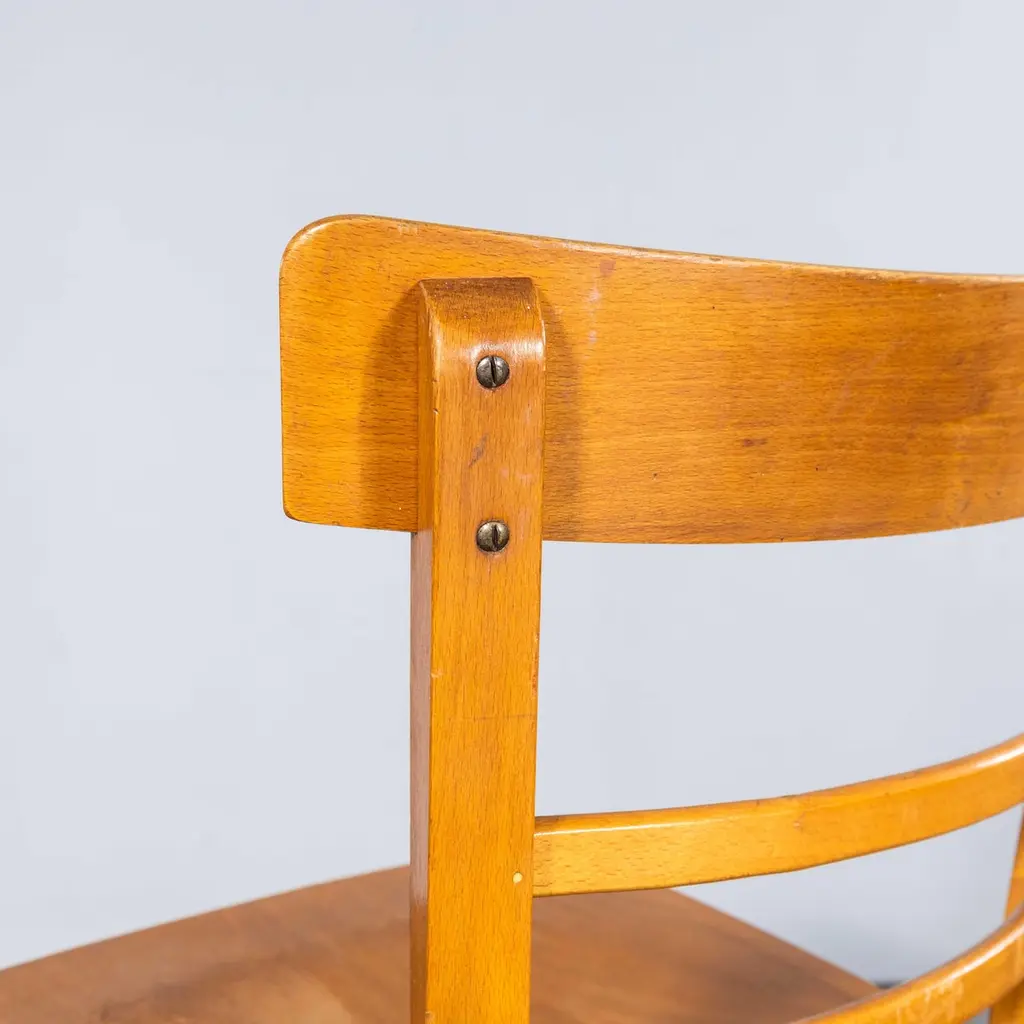 1960’s Clasic Ladder Back Beech Dining Chair – Good Quantity Available1960’s Classic Ladder Back Beech Dining Chair – Good Quantity Available. Salvaged from a community hall in Lancashire these chairs were originally produced in Romania. A classic mid century shape, an evolution of the original bentwood styles. Good strong practical chairs, our workshop has cleaned and serviced them and they are ready to go. Seat height 46cm.WORKSHOP REPORTOur workshop team inspect every product and carry out any needed repairs to ensure that everything leaves us serviced and maintained ready for many more years of life. All of our vintage products show the rich beauty and history of their life with the knocks and bumps of many years of use and we try to minimise restoration to keep every piece as original as possible.Date: 1960'sMaker: Industrial Production - Eastern EuropeDimensions:L 44 x W 44 x H 78 cm